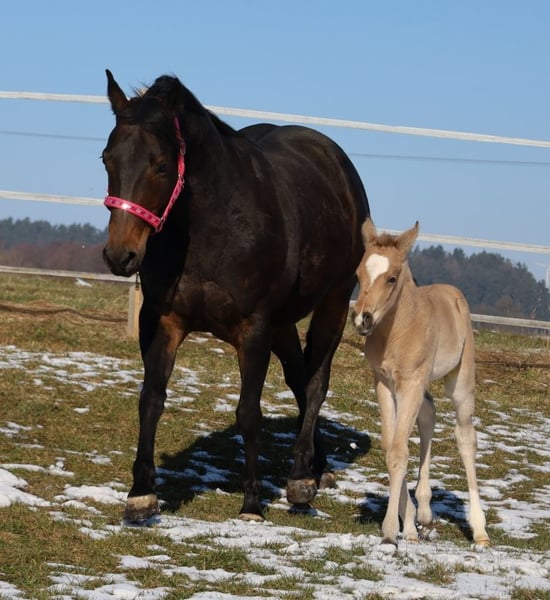 GOTTA LOPIN LUCINDA, urodzona 26.01.2026, buckskin Na tym naszym pastwisku „Liz Gotta Gun“ (Lisbeth) i „Blackberry“ stworzyli naprawdę słodką klaczkę urodzoną z miłości – można tylko powiedzieć, że ta krycia była idealna. „Lucinda” odziedziczyła po rodzicach wszystkie pozytywne cechy: poprawną budowę ciała i ustawienie kończyn, dużo uroku i charakteru, potencjał ruchowy, a z pewnością będzie niezawodnym partnerem do jazdy, tak jak jej rodzice, co z pewnością sprawi, że miłośnicza jazdy rodzina będzie z niej bardzo zadowolona. Będzie także doskonałym koniem do jazdy w reiningu i klasach ranch horse, takich jak Ranch Riding, Ranch Trail, Ranch Rail, a także w sportach wszechstronnych. O tym świadczy także jej rodowód, w którym znajduje się wiele wysokiej klasy reproduktorów i legend hodowli Quarter Horse, takich jak Hollywood Dun It, Grays Starlight, Smart Little Lena, Continental King i King P-234. Dokumenty AQHA są dostępne online, a wkrótce zostanie ona oznakowana chipem i otrzyma paszport DQHA wraz z zaświadczeniem hodowlanym. Oboje rodzice przeszli test 5-panelowy oraz test IMM/MYH1. Jak wszystkie nasze źrebięta, dorasta w stadzie z rówieśnikami i innymi końmi, pod opieką doświadczonych wychowawców. Regularne odrobaczanie i wizyty u kowala są u nas standardem. Przy sprzedaży zapewniamy ubezpieczenie na życie wraz z zaświadczeniem lekarskim o stanie zdrowia. Koszty i ryzyko pozostają u nas do momentu przekazania – czyli do końca 6. miesiąca życia. Na życzenie i na koszt kupującego możliwa jest wpłata na program Futurity NRHA i NSBA (od tego roku dostępne) oraz program młodych koni EWU. Jej rodzice i kilka półbraci są dostępni do obejrzenia na naszej farmie. Na ostatnich zdjęciach widać jej rodziców. Tel. 0170/4443194 Więcej zdjęć i informacji na stronie www.goetz-quarterhorse.de