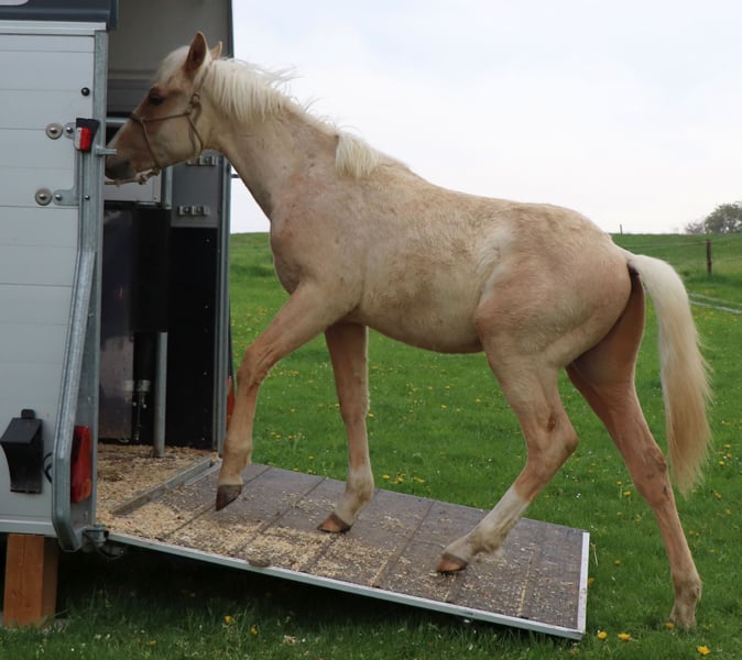 Peppy Doc King Maxen - This palomino, born in 2024 (final height approx. 148 cm), with a stunning white mane and tail, is an absolute eye-catcher - compact, correctly built, and with promising proportions. A young horse that impresses not only with its appearance but also with its wonderful character. He is people-oriented, friendly, attentive, and eager to learn. In daily handling, he is well-behaved, relaxed, and uncomplicated. He faces challenges with courage and curiosity and learns quickly. Even now, he can be loaded without any issues and walks calmly and confidently on a lead in the terrain. The stallion is growing up healthy and robust in a mixed herd in an open stable and is lovingly and knowledgeably introduced to his tasks as a riding horse - according to the principles of Natural Horsemanship, step by step and without time pressure. His color genetics (e/e, A/a, CH/ch) not only make him particularly interesting in color but also open up breeding potential. Peppy is vaccinated according to his age and regularly dewormed. His pedigree leaves nothing to be desired: top cutting lines (grandson of Peptoboonmal) on the paternal side meet excellent riding qualities on the maternal side - an ideal combination for sport, competition, and leisure. The stallion is eligible for DQHA as well as Regional Futurity and has everything it takes to become a versatile riding horse with charm, talent, and heart in the future.