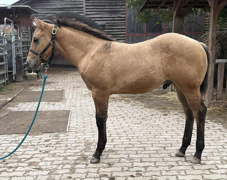 Roosters Bexx On Ice - bildhübscher dunskin Quarter Horse Hengst (5.25 geboren, voraussichtliches Endmaß ca. 150 cm) bringt alles mit, was man sich von einem Nachwuchspferd wünscht: Ein korrekter, kompakter und kräftiger Körperbau, eine gute Bemuskelung und ein gesundes Fundament machen es zu einem echten Allround-Talent mit Zukunft. Der kleine Charmeur wächst artgerecht im Herdenverband mit anderen Jungpferden auf und wird täglich liebevoll gehändelt. Bexx zeigt sich durchweg menschenbezogen, verschmust, brav und unkompliziert - einfach ein Schatz im täglichen Umgang. Er liebt seine Kuscheleinheiten und bleibt dabei stets cool und freundlich. Bei Abgabe: geimpft, regelmäßig entwurmt, kennt Tierarzt & Hufschmied. Toller Beweger - ideal für Freizeit und mehr. Ein Nachwuchspferd mit viel Herz, Qualität und Potenzial - ideal für Menschen, die einen unkomplizierten, talentierten Partner fürs Leben suchen.