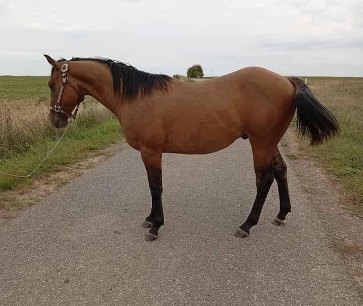 ✨Available ✨ Magnificent yearling PP AQHA bay dun 6 panel N/N born on 04/11/2024 Dam: DG SAIL ON TOP CHIC (chic please; topsail whiz) Sire: BLACKBURN DD SHADE (cool shady kat) ✅ Homozygous black E/E A/a D/nd ✅ Super character, easy to handle ✅ Loads into the trailer without any problem ✅ Walks on the lunge line by the road (ok with cars, tractors…) ✅ Farrier, vaccinations, deworming… ✅ Transport possible