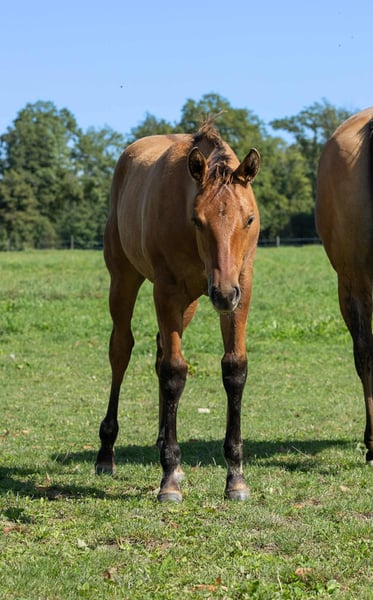 « Brandy » - Poulain Quarter Horse, Custom Gun Smoke x Lovers Magic Girl, né en mai 2025, de couleur dun, cherche une nouvelle famille après le sevrage à l'automne. Il séduit par sa conformation correcte, sa musculature bien équilibrée et son caractère amical. Il grandit dans un groupe mixte sur de vastes terrains, est bien socialisé et connaît le vétérinaire ainsi que le maréchal-ferrant. Sa sœur aînée de 3 ans (photo précédente), mesurant actuellement 1,55 m, est également présente à l’élevage et montre beaucoup de talent pour le reining et l’équitation polyvalente. Si souhaité, « Brandy » peut également rester chez nous pour une croissance supplémentaire, contre supplément.