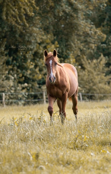 Calimero is an open-minded young stallion who is raised in a species-appropriate environment with a herd of stallions of the same age. He is regularly dewormed and has been introduced to the farrier. He comes from the best Reining/cowhorse lines. Further information available upon request.