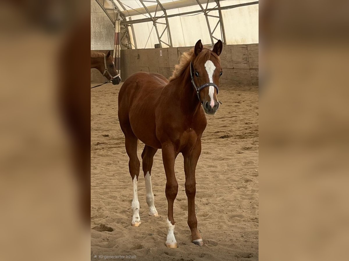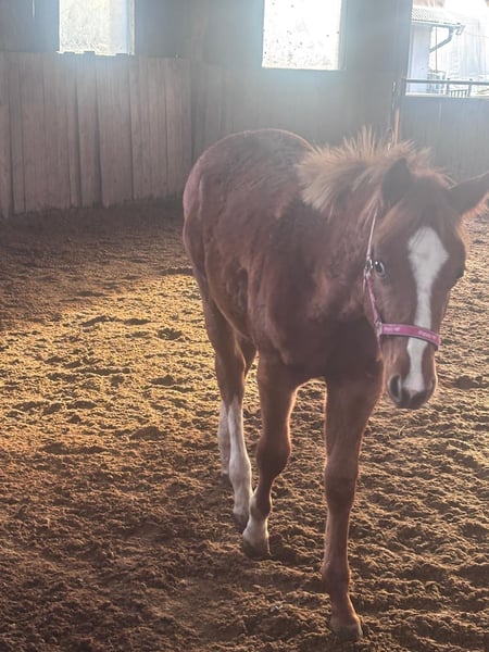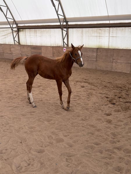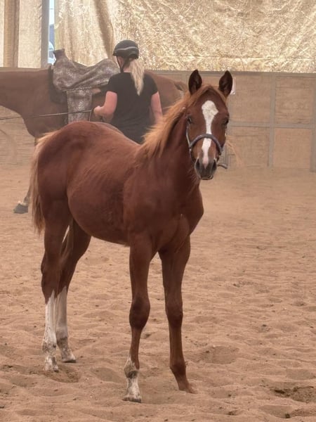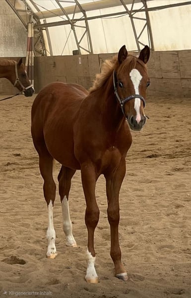 Hot Nite Invitation - ein bildhübscher Quarter Horse Hengst, geboren am 13. März 2025. Mit seiner eleganten sorrel-Farbe, seinem korrekten Gebäude und der harmonischen Bemuskelung ist er ein echter Blickfang. Er wird voraussichtlich ein Endmaß von etwa 160 cm erreichen und damit später auch größere Reiter gut abdecken können. Seine AQHA-Papiere liegen bereits vor. Dieser junge Hengst wächst artgerecht im Herdenverband auf und kennt sowohl Paddock-Box als auch Weide. Er ist altersentsprechend geimpft, regelmäßig entwurmt und an Tierarzt sowie Hufschmied gewöhnt. Hot Nite Invitation zeigt sich stets brav, ruhig und gelassen, dabei aber aufmerksam, lernfreudig und charakterstark. Sein menschenbezogener, lieber Charakter macht den täglichen Umgang mit Rocky zu einer Freude. Auch unter Bewegungsaspekten weiß dieser Youngster zu überzeugen: Er zeigt bereits jetzt schöne, taktreine Grundgangarten und bringt das Potenzial für eine erfolgreiche Laufbahn im Sport oder auf Turnieren mit. Dank seiner erstklassigen Pleasure- und Allround-Abstammung (Hotroddin Invitation x Nite Chip) eignet er sich ebenso hervorragend als zuverlässiger Freizeitpartner. Hot Nite Invitation ist DQHA Futurity startberechtigt, kennt das Fohlen-ABC und ist selbstverständlich halfterführig. Mit seinem hervorragenden Exterieur, seinem angenehmen Wesen und seinem vielseitigen Talent ist er ein echtes Versprechen für die Zukunft - ganz gleich, ob als Showpferd oder treuer Freizeitkamerad. Kann gerne zur Aufzucht bleiben.