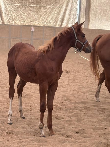 Hot Nite Invitation - ein bildhübscher Quarter Horse Hengst, geboren am 13. März 2025. Mit seiner eleganten sorrel-Farbe, seinem korrekten Gebäude und der harmonischen Bemuskelung ist er ein echter Blickfang. Er wird voraussichtlich ein Endmaß von etwa 160 cm erreichen und damit später auch größere Reiter gut abdecken können. Seine AQHA-Papiere liegen bereits vor. Dieser junge Hengst wächst artgerecht im Herdenverband auf und kennt sowohl Paddock-Box als auch Weide. Er ist altersentsprechend geimpft, regelmäßig entwurmt und an Tierarzt sowie Hufschmied gewöhnt. Hot Nite Invitation zeigt sich stets brav, ruhig und gelassen, dabei aber aufmerksam, lernfreudig und charakterstark. Sein menschenbezogener, lieber Charakter macht den täglichen Umgang mit Rocky zu einer Freude. Auch unter Bewegungsaspekten weiß dieser Youngster zu überzeugen: Er zeigt bereits jetzt schöne, taktreine Grundgangarten und bringt das Potenzial für eine erfolgreiche Laufbahn im Sport oder auf Turnieren mit. Dank seiner erstklassigen Pleasure- und Allround-Abstammung (Hotroddin Invitation x Nite Chip) eignet er sich ebenso hervorragend als zuverlässiger Freizeitpartner. Hot Nite Invitation ist DQHA Futurity startberechtigt, kennt das Fohlen-ABC und ist selbstverständlich halfterführig. Mit seinem hervorragenden Exterieur, seinem angenehmen Wesen und seinem vielseitigen Talent ist er ein echtes Versprechen für die Zukunft - ganz gleich, ob als Showpferd oder treuer Freizeitkamerad. Kann gerne zur Aufzucht bleiben.