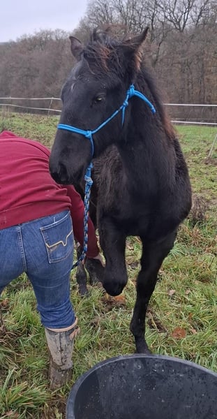 Drifts To The Future ist ein bildhübscher American Quarter Horse Hengstjährling, geboren am 05.06.2025. Er ist schwarz (black) mit nur wenigen Stichelhaaren an der Stirn und genetisch homozygot black sowie homozygot agouti. Die AQHA-Papiere sind beantragt, das zu erwartende Endmaß liegt bei ca. 162 cm. Der junge Hengst überzeugt durch ein korrektes Gebäude, eine sehr gute Entwicklung, ausgewogene Bemuskelung und starke Knochen. Midnight wird später auch größere Reiter problemlos abdecken können. Seine Grundgangarten sind gut und taktsicher, er lernt schnell und bringt ein ausgeglichenes, angenehmes Temperament mit. Charakterlich ist Midnight ein echtes Goldstück. Er ist sehr menschenbezogen, stets freundlich, ruhig und gelassen und meist der Erste, der einen am Weidetor begrüßt. Er möchte gefallen, ist sehr brav im Umgang und zeigt sich jederzeit kooperativ. Er wächst im Herdenverband auf, kennt das Fohlen-1x1, ist halfterführig und kennt sowohl Tierarzt als auch Hufschmied. Er ist gesund,regelmäßig entwurmt und 6-Panel n/n getestet. Abstammungsmäßig ist er etwas ganz Besonderes: Er ist der einzige Sohn von Drifts Chip in Europa und stammt aus der berühmten 6666 Ranch-Blutlinie, die weltweit für Vielseitigkeit, Leistungsbereitschaft und Rittigkeit bekannt ist. Damit ist er nicht nur für Freizeit und Turniersport, sondern auch für die Zucht hochinteressant. Ob als zukünftiges Showpferd, Sportpartner oder zuverlässiger Freizeitbegleiter - mit seinem Potenzial für verschiedene Disziplinen und seinem außergewöhnlich lieben Charakter ist Drifts To The Future ein echtes Versprechen für die Zukunft.