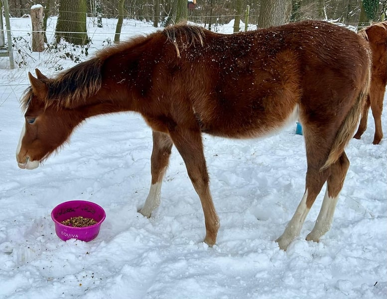 Schönes und gelassenes Quarter Horse Hengstfohlen von Shiners Voodoo aus einer direkten Gunnatrashya Stute! Über die Eltern 6 Panel N/N! NRHA Germany eingezahlt. Er hat die Traumfarbe Chestnut und einen unerschrockenen und lieben Charakter! Standort Wolfsburg! Kann gerne zur weiteren Aufzucht bleiben!