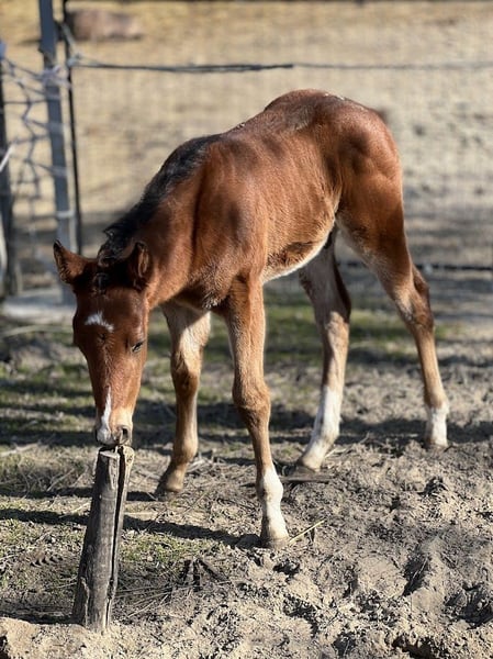American Quarter Horse Hengst – geboren im Februar 2025 Zum Verkauf steht ein Fohlen, geboren im Februar 2025. Er wächst in einer halb-offenen (Weidehaltung) Umgebung auf. Sein Vater ist Reds Rooster Delmaso, seine Mutter ist Sliding del Custom. Er ist ein freundliches, neugieriges und lernbegieriges Jungfohlen. Er besitzt eine ausgezeichnete Konformation, eine kräftige Knochenstruktur und bewegt sich mit Leichtigkeit und Eleganz. Sein Vater war ein herausragender Turnierpferd, und die Blutlinie seiner Mutter umfasst die Topsail Whiz-Linie, was ihn zu einem vielversprechenden Kandidaten für zukünftige Turniere macht – sowohl auf der Seite des Vaters als auch der Mutter. Bei Interesse stehe ich gerne für weitere Informationen zur Verfügung!