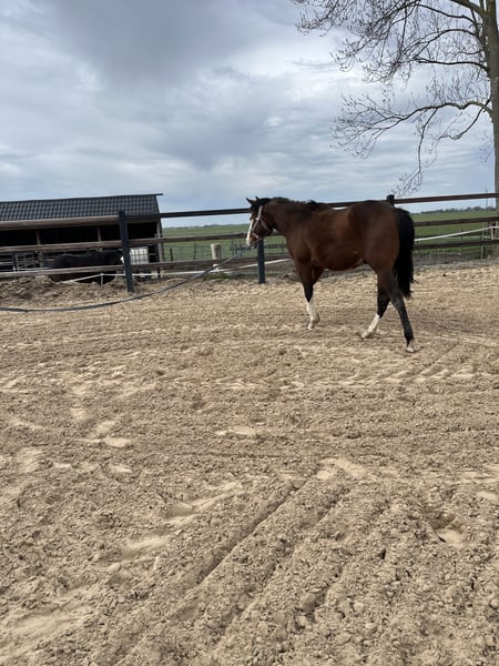 Jährlinghengst 2024, von bewährten Blutlinien im Cutting, Ranch und Reining abstammend. Bereits bereit für die kommende Turniersaison. Doppelregistriert bei APHA und AQHA. Sehr anhänglich und leicht im Umgang.