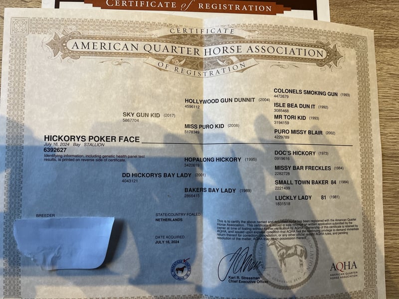 Stallone nato nel 2024, figlio di linee di sangue affermate nel cutting, ranch e reining. Pronto per la prossima stagione di esposizioni. Doppio riconoscimento APHA/AQHA. Molto affettuoso e facile da gestire.