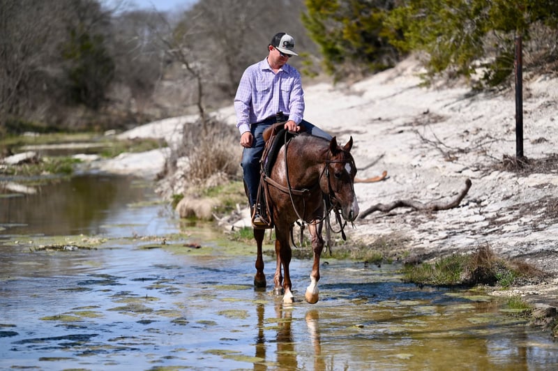 𝐍𝐀𝐓𝐄 𝐁𝐀𝐋𝐋𝐄𝐑𝐈𝐍𝐎 𝐇𝐎𝐑𝐒𝐄 𝐂𝐎'𝐬 ★ ℝ𝕀𝔸𝕋𝔸 𝔹𝕌ℂ𝕂𝕃𝔼 ★ 𝑺𝒉𝒐𝒘𝒄𝒂𝒔𝒆 Happening now thru SATURDAY | FEBRUARY 28th - Available EXCLUSIVELY on HorseBid's website! For more details and to register visit: www.Horsebid.com CONSIGNOR CONTACT: Nate Ballerino Horse Co 254-716-9588 LOCATION: Waco, TX BREED: Quarter Horse REGISTERED: Yes REGISTERED NAME: STEVIELOOKSGUDNPRADA COLOR: Red roan HEIGHT: 14 AGE: 2 GENDER: Stallion Stevielooksgudnprada 6 Panel N/N Joker is a gorgeous red roan Stud colt by the horse Stevie Rey Von who won over 420 k and out of a money earning and producing daughter of Cats Merada. He will have 45 days under saddle by sale day and is showing potential. He takes both his leads and lopes quiet. This is a phenomenal prospect that is bred the very best and will go far in anyone discipline you choose. He is quite to be around but has all the athletic ability and brains when asked. Joker is Eligible for the Breeder's Invitational, National Cutting Horse Association Super Stakes, National Reining Breeders Classic, NRCHA Cow Horse Incentive, Riata Buckle, PCCHA Stakes, Chrome Cash, Gold Buckle Futurity, IQHA Ranch Horse Futurity, Royal Crown, and Legacy Bonus Program. Please Call Nate Ballerino at 254-716-9588 with any questions. Nation wide shipping can be arranged.