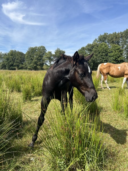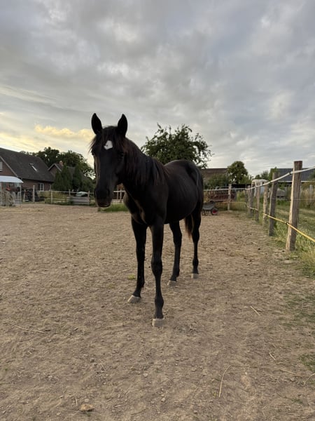 Zum Verkauf steht ein wunderschöner 2-jähriger Quarter Horse Hengst mit hervorragender Abstammung und einem ausgeglichenen Grundcharakter. Der junge Hengst überzeugt durch seine Neugier, Lernbereitschaft und Menschenbezogenheit. Er ist altersgerecht aufgewachsen, kennt den täglichen Umgang und zeigt sich im Handling überwiegend brav und unkompliziert. Wie es für sein Alter und als Hengst typisch ist, zeigt er gelegentlich noch leichte Hengstmanieren. Diese sind jedoch im normalen Rahmen und mit konsequenter, erfahrener Hand gut zu händeln. Er eignet sich ideal als zukünftiges Freizeit-, Sport- oder Zuchtpferd und bringt beste Voraussetzungen für eine vielseitige Ausbildung mit. Details: • Rasse: Quarter Horse • Geschlecht: Hengst • Alter: 2 Jahre • Farbe: Rappe • Gesundheitszustand: top, regelmäßig entwurmt und dem Schmied vorgestellt Der Hengst ist noch roh, kann aber problemlos weiter Bei Interesse oder Fragen gerne melden. Besichtigung nach Absprache möglich.
