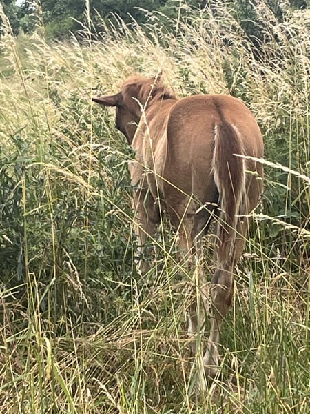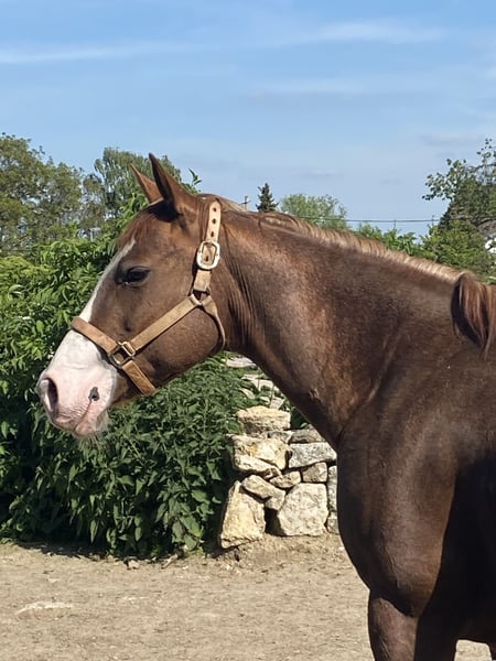 **Sales Advertisement: American Quarter Horse Stallion** ATTENTION Special Price!!! For sale is a promising American Quarter Horse stallion, born in 2024. This young chestnut impresses with his striking appearance and a projected height of 150 cm. He is specifically bred for the discipline of Reining and already shows great potential in this demanding sport. With his excellent pedigree and natural talent, he is the ideal partner for ambitious riders looking to succeed in Western riding. This stallion not only impresses with his athletic abilities but also with his friendly nature and willingness to learn. He is perfectly suited for riders seeking a reliable and high-performing companion. If you are interested in this exceptional American Quarter Horse stallion, we look forward to your contact. Viewing and trial riding are possible by arrangement.