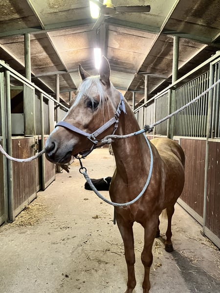 Vendo quarter horse con documento di razza. Il cavallo ha 3 anni ed ha una doma di base (passo, trotto, galoppo). Ideale per passeggiate, scuola, tempo libero. Altezza al garrese attuale: 141 cm ( in crescita). Mantello: palomino Abituato al contatto umano, al maniscalco e al veterinario. Attualmente è intero ma vive in box di fronte a una femmina ed è tranquillo.
