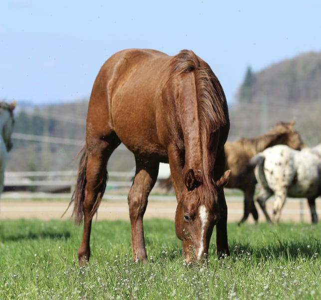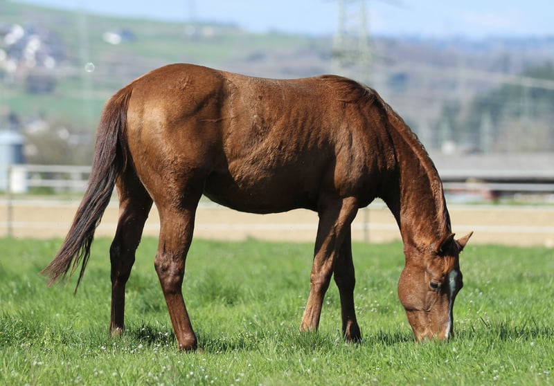 Młody ogier Quarter Horse z marca 2023 roku, kasztanowaty