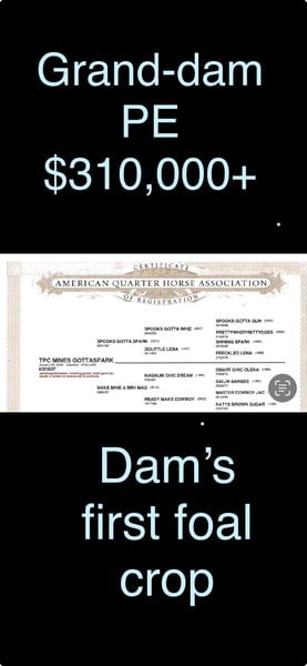 Stallone di 2 anni disponibile “Tate” Stallone Spooks Gotta SPARK da una madre Magnum Chic Dream non ancora partorita Fratello pieno della madre con guadagni totali di oltre $200.000 Nonna: Ready Make Cowboy Guadagni potenziali $310.000+ Questo è un assoluto eccezionale stallone di 2 anni con tutte le caratteristiche di un eccezionale prospetto per il reining. GRANDE FERMO - fisico e stiloso Giri senza sforzo Lento naturalmente rotondo ed elegante Facile cambio di mano Pedigree da showhorse con una forte linea materna Bellissimo e con occhi blu Intelligenza e sensibilità per un cavaliere di alto livello Calmo, gentile, disponibile e sicuro di sé TPC Mines Gottaspark ha già dimostrato di essere un eccezionale prospetto da show. Si trasporta e monta in posti nuovi come un'anima vecchia. È stato portato in passeggiata, ha seguito il bestiame, e sta legato nella zona di roping. Ha portato una ragazza di nove anni con assoluta sicurezza. Luiz (allenatore) ha iniziato diversi Campioni L4 Futurity e Derby (Open e Non Pro). “Tate” sembra destinato a unirsi a quel gruppo di laureati All-Star. Inutile dire che saremmo assolutamente entusiasti di tenerlo nel nostro programma. ☑️ Nominato NRHA & NRBC ‼️ Idoneo per NARS ☑️ Idoneo per INVITATIONAL ☑️ Idoneo per 100X ☑️ Radiografie pulite da puledro ☑️ Solido e senza vizi Situato a Gainesville TX Presentato con orgoglio da LoL Reiners Video (5 luglio) https://m.youtube.com/watch?v=XdpMxKemr5w @highlight