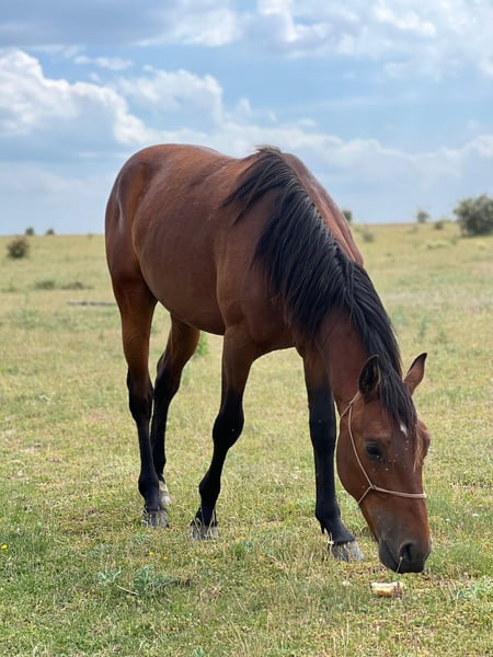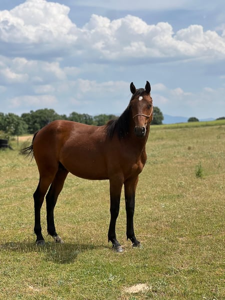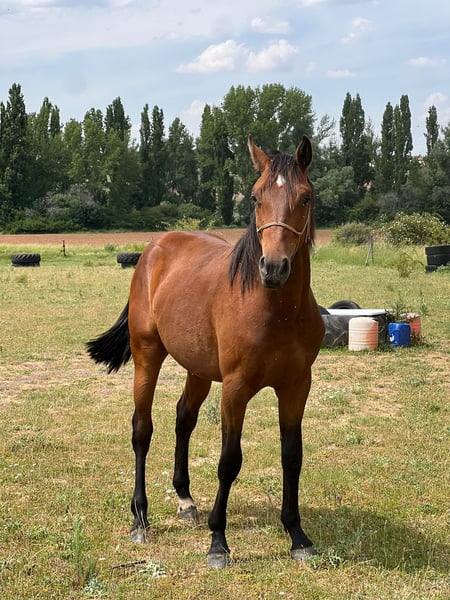 Bob Potro cruzado de Quarter Horse (cuarto de milla) con Lusitano Castaño 155 cm altura actual en crecimiento Nacido en 2022 (2 años) Entero Potrazo de campo con grandes origenes, ideal para empezar un proyecto que tenga un futuro prometedor, con paso grande y serio y un galope resondo y completo. Cualquier consulta llama al 696613777