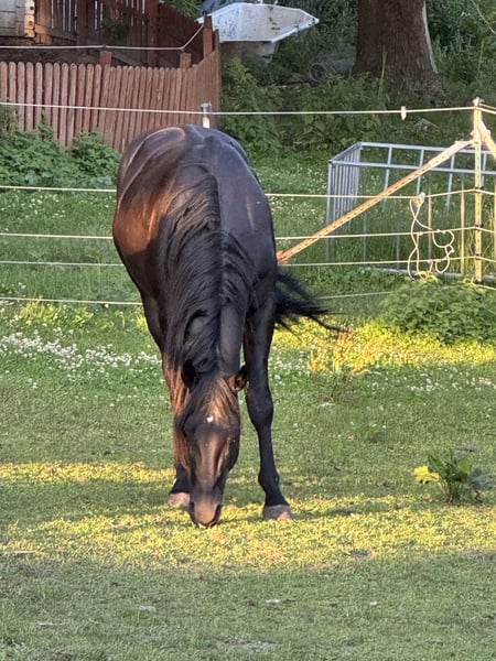 We are selling our beautiful Quarter Horse stallion "Caruso" (Go Little Joker) due to emigration. He was born on July 1, 2017. He had an accident with the previous owner, which has healed and been clinically assessed. He is registered as a breeding stallion in the DQHA. In 2024, he was professionally started under English saddle and showed himself to be secure under saddle even after a longer break. However, he is not a beginner horse. His character is friendly and calm.