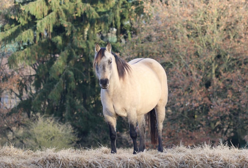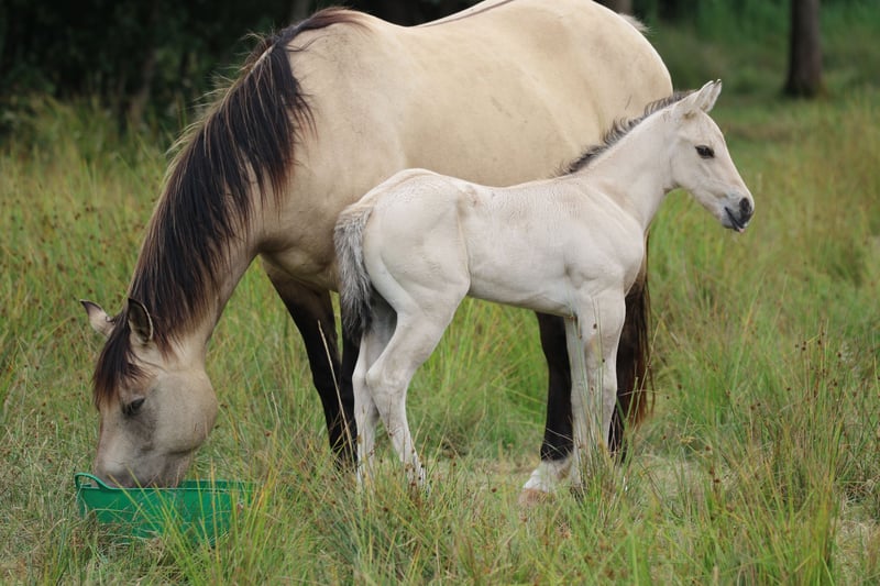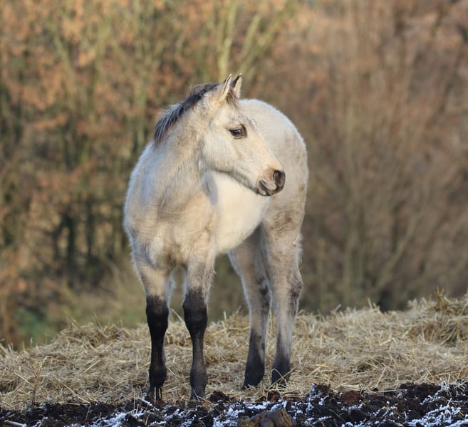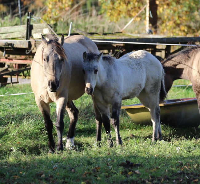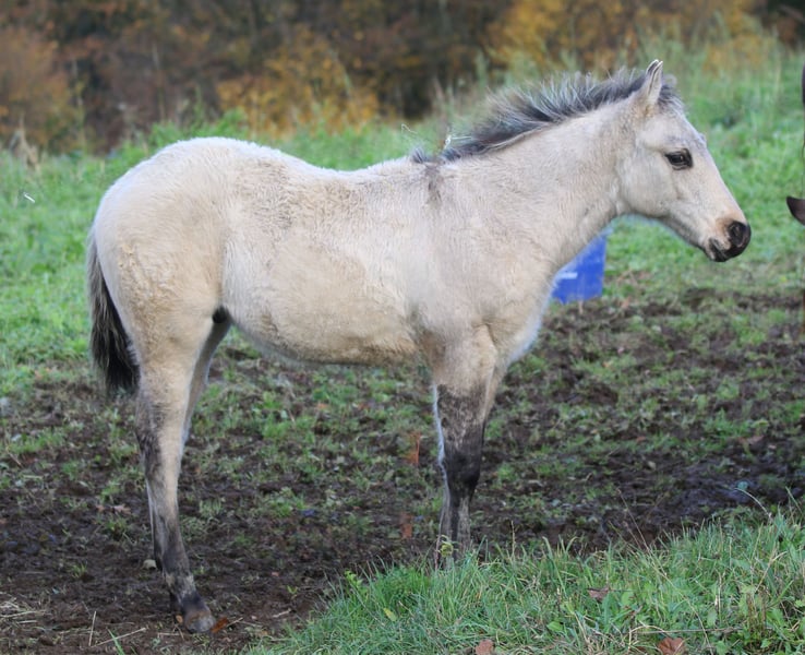 AHF POCO EL PICARO 95% NFQHA- Foundation Quarter Horse Hengstfohlen, mit NFQHA- Zertificat, das ihn als ein originales Foundation Quarter Horse ausweist in der Farbe Dun EE - Aa- D/nd2-cream/n und einem 21% Poco Bueno Blutanteil, sowie einem 21% King Blutanteil. Sein geschätztes Endmaß wird ca. 150 cm sein. AHF Poco El Picaro ist am 25. Juni 2025 geboren. Seine Mutter ist "AHF BUENO JOY" , sein Vater ist "JAZ POCO SIMPATICO"! Dieses wundervolle Hengstfohlen hat einen King-& Poco Bueno Blutanteil in Höhe von 21%. Er ist ein fantastisches und wunderschönes Foundation Quarter Horse Hengstfohlen mit einem dem Menschen sehr zugetanen Charakter. Seine momentane sanfte cremige Farbe, die an einen Buckskin erinnern, wird erst nach dem Wechsel des Winterfells, in eine wunderschöne kräftige Cream- Dun Farbe umfärben und richtig zur Geltung kommen. Dazu die hoch gestiefelten tiefschwarzen Beine, mit den wundervollen, tiefschwarzen Zebrastreifen an Rücken und am Schulterkreuz, lassen ihn zu einem bildschönen originalen Quarter Horse par Exzellente werden. Er verspricht genau solch ein Originales Foundation Quarter Horse zu werden, wie wir es uns erträumt haben! Wenn Sie ein ausgeglichenes, sehr ruhiges und in sich gefestigtes Quarter Horse suchen, könnte der kleine Picaro genau der Richtige für Sie sein und Sie begeistern. "AHF Poco El Picaro" wird keine Wünsche der Westernreiterei oder Freizeitreiterei offen lassen und ist ein sehr typvolles Foundation Quarter Horse. Einige seiner berühmten Vorfahren wurden erfolgreich in den Kuhklassen geritten und er wird mit Sicherheit in deren Fußstapfen treten. Er trägt mit Stolz die Eigenschaften seiner Vorfahren King und Poco Bueno in sich. "AHF Poco El Picaro" ist ein sehr interessantes Foundation Quarter Horse Hengstfohlen für einen NFQHA- Foundation Quarter Horse Züchter und /oder Liebhaber, der die Attribute der King und Poco Bueno Blutlinie in seiner Pferdezucht oder Reiterei aufrechterhalten möchte. "AHF Poco El Picaro" ist frei getestet über seine Eltern von den Gen - Defekten Hypp , Herda, Pssm 1, MH, GBED und Myhm/IMM. www.absarokee-horse-farm.com Auf den letzten beiden Bildern sehen Sie seinen Vater "Jaz Poco Simpatico" und seine Mutter "AHF Bueno Joy"!