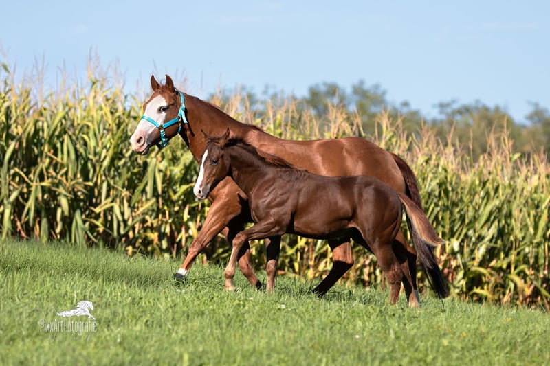 ‼️SOLD‼️ 🌟PLUS ME IM TRASHY🌟 Hier ist der Name Programm, denn TRASHY ist bereits ein Champion! Im Zuge der DQHA Zuchtschau überzeugte er die Zuchtrichter mit über 2 Punkten Vorsprung zum Zweitplatzierten von insgesamt 5 Hengstfohlen mit einer Gesamtnote von 82,84% und wurde anschließend Gesamtsieger aller vorgestellten Fohlen. Er punktete unter anderem in der Stellung mit herausragenden 92,36 %, im Typ mit 85,71% und im Fundament mit 80,13%. Wir waren von Anfang an absolut begeistert von diesem tollen Kerl und freuen uns jetzt umso mehr über diese hervorragenden Bewertungen und unser 1A Prämienfohlen, mit dem wir uns fürs Bundeschampionat in Münster qualifiziert haben. Hinzukommt seine Abstammung die keine Wünsche offen lässt. Sein Vater ist Smoking Trash (LTE $138.000 and counting), dessen älteste Nachzucht jetzt 2 jährig ist und sich sehr vielversprechend für die Futurities im kommenden Jahr entwickelt. 2024 war Trashys 3/4 Bruder im Blut (Dam by Wimpys Little Step) als Jährling mit $125.000 Highseller auf dem Sale. Seine Mutter ist Wimpybargainbeauty, eine direkte Wimpys Little Step Tochter, die selbst sehr erfolgreich in Open und Non Pro Reining und Ranch Riding geshowt wurde und immer noch geritten wird. Ihre Nachtzucht besticht durch starke Manöver, Rittigkeit und excellente Bewegungen. TRASHY wird doppelt registriert (AQHA & APHA) und erhält seinen Equidenpass von der DQHA. Er beherrscht jetzt schon das Fohlen ABC, kennt Hänger fahren, Hufschmied und wird selbstverständlich regelmäßig entwurmt. Ab November darf er ins neue Zuhause umziehen. Do you want your own Champion - here he is!