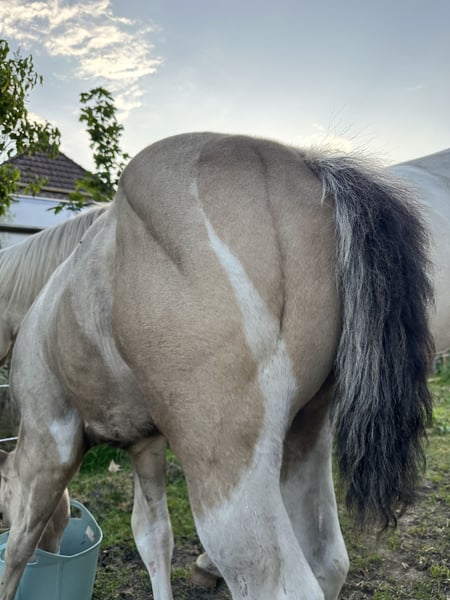 Unser wunderschöner Buck sucht ab November ein 5 ⭐️ zuhause. Geb: 29.05.2025 Vater : Doolins Candy Bar ( Paint) Mutter : Star Little Moon ( Quarter ) Buck ist super neugierig , schlau und ein echter Hingucker . Typisch für die „Doolin“ Fohlen ist sein Charakter . Er kennt das Fohlen ABC , gibt alle Hufe , kennt das Halfter & hat einfach gar keine Angst und ist immer entspannt . Er hat nun schon ein tolles , stabiles Exterieur was auf eine weiter tolle Entwicklung hoffen lässt . Buck wird eine tolle Größe bekommen und durch sein tolles Fundament auch später größere Leute gut abdecken .