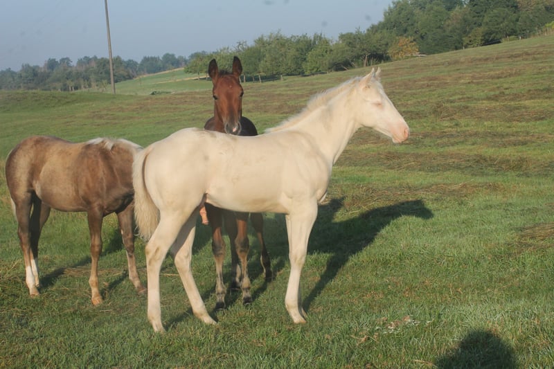 This stunning Perlino Quarter stallion, born in 2025, not only impresses with his unique appearance but also with his excellent pedigree and loving character - a real cuddle bear. We have been breeding Quarterhorses for over 20 years. Our horses grow up in a species-appropriate manner on large pastures and are, of course, familiar with the foal ABC.