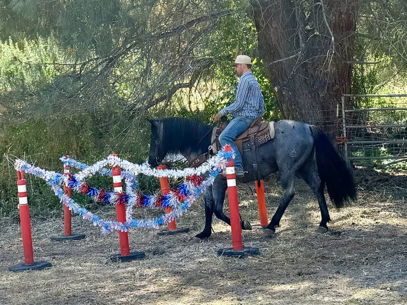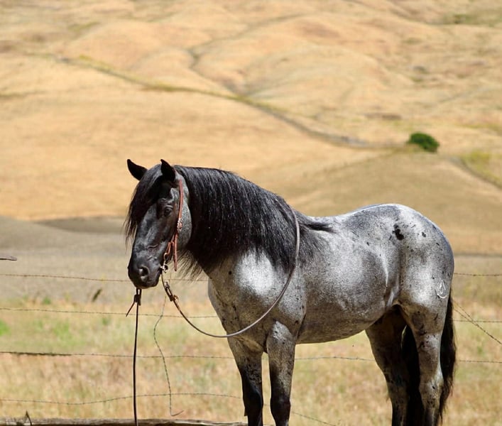 "AVAILABLE ON ONLINE HORSE AUCTION AT www DOT PlatinumEquineAuction DOT com BIDDING OPEN NOW thru SUNDAY | MAY 3RD! *Final price will be determined on auction site* CONSIGNOR CONTACT INFO: Longhorn Ranch 831-537-1915 LOCATION: Paicines, CA Bluey “If safe and dependable is at the top of your list this one is for you “ 10-Year-Old Blue Roan Gelding • 14 Hands There are safe horses… and then there are the ones that make everything feel easy. Bluey is in a class of his own. This gelding is as gentle and forgiving as they come, the kind that takes care of whoever is in the saddle—big, small, experienced, or just getting started. He doesn’t get bothered, doesn’t get in a hurry, and doesn’t make you work to get along with him. He meets you where you’re at and handles the rest. Standing a handy 14 hands, Bluey rides with the confidence and presence while keeping that smooth, steady way of going that makes him enjoyable for hours. With his deep blue roan color and long, flowing mane and tail, he has the kind of look that turns heads—but it’s how he rides that people remember. This is the kind you can truly do anything with. Step up on him, stand on him, slide off, move around, and never feel out of place. Point him at an obstacle and he doesn’t hesitate—he just goes to work. Bridges, water, steep hills, rocky ground, brush, tight spots—it’s all handled the same way: quiet, steady, and confident. He’s the kind that feels like he’s already thinking one step ahead, making sure his rider is taken care of. In the arena, he’s just as dependable. He lopes around collected, picks up both leads with ease, and stays soft and balanced through every transition. He has a clean turnaround, a natural stop, and backs willingly. Everything is correct, simple, and consistent—nothing forced, nothing missing. Outside, he’s as seasoned as they come. He’s been exposed to traffic, obstacles, flags, tarps, balls, and commotion, and it doesn’t change him. New places don’t require an adjustment period—he steps off the trailer the same horse every time and goes right to work. Bluey has also been used on the ranch and knows what a job looks like. He’s gathered cattle, sorted, and has been roped on, handling it all with the same quiet, willing attitude. He’s the kind you can count on when it’s time to get something done, and the same one you can turn around and enjoy the rest of the day on. On the ground, Bluey is just as easy as he is under saddle. He’s simple to catch, stands quiet for grooming and saddling, and handles daily life without fuss. He ties well, hauls quietly, and settles in wherever you take him. He’s well-mannered for the farrier and vet, stands like he should, and keeps that same calm, willing attitude in everything he does. He doesn’t need constant riding to stay this way, and he doesn’t come with quirks to manage. Whether he’s ridden every day or sits for a bit, he comes out the same—steady, gentle, and ready to go. There are plenty of horses that claim to be safe. Bluey is the kind that proves it every single ride. Paicines, California Dina at Longhorn Ranch – 831-537-1915 We welcome in-person visits or video calls to see him in detail. Shipping available nationwide with reputable haulers.