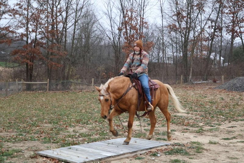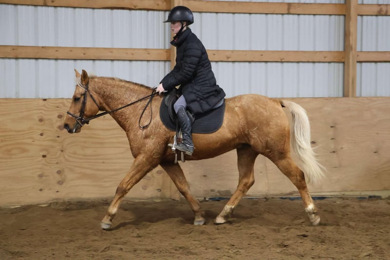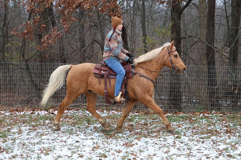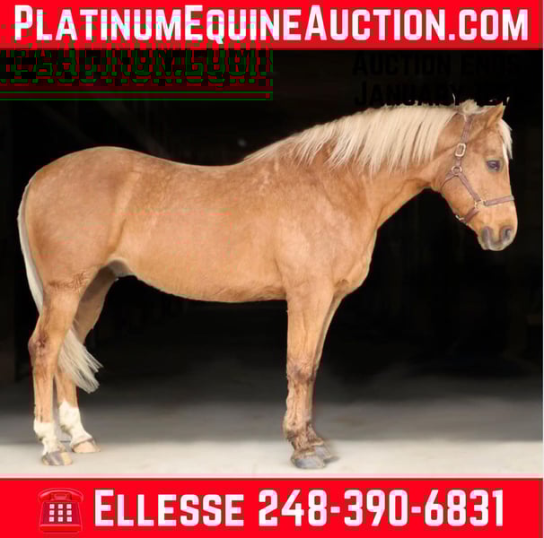 ONLINE AUCTION Place your bids at www.PlatinumEquineAuction.com Starting Bid $3500 Auction ends January 12th, 2024 Need a new saddle? Check out White Rock Saddles on our website or Facebook! Meet Bruno! Here’s an in your pocket gelding that has it all! He will check off a lot of boxes! Bruno is a beautiful palomino grade quarter horse gelding that is 8 years old and 14.2hh. He has a long blonde mane and tail, white star, two white socks, and kind eyes. Bruno has correct conformation, strong barefoot hooves, and a nice stocky quarter horse build which makes him perfect for most riders of all sizes and ages. Bruno’s resume is very extensive as he is a well rounded horse that has done and seen it all! In the arena he rides at a walk trot and canter, jumps up to 2ft with room to grow, he’s started on the barrel and pole pattern, and is learning all of those fancy buttons such as pivoting, side passing, and working the trail obstacles. He rides both English and western in a snaffle bit or a light curb bit. Bruno is not the spooky type. He’s been exposed to tarps, balls, traffic, dogs, farm animals, water, pool noodles, bridges etc. Bruno has done more trail riding than anything! He will lead or follow or ride out alone. There’s nothing out on the trails that Bruno can’t handle. Water, hills, logs, rocks, and wildlife is not a problem for Bruno. He handles new places very well! He’s been hauled all over Michigan, Ohio, Indiana, Kentucky, and Illinois. On the ground Bruno is easy to catch, lead, and bathe. He stands well for mounting/dismount, grooming, tacking, and for both the farrier and vet. Bruno is a wonderful all around horse! He’s at his prime age and can be finished in any discipline, or do it all with Bruno! He’s game for anything! Bruno lives in Howell, MI 48855 Call or text Ellesse Schwartz 248-390-6831. ONLINE AUCTION Place your bids at www.PlatinumEquineAuction.com Starting Bid $3500 Auction ends January 12th, 2024 Need a new saddle? Check out White Rock Saddles on our website or Facebook!