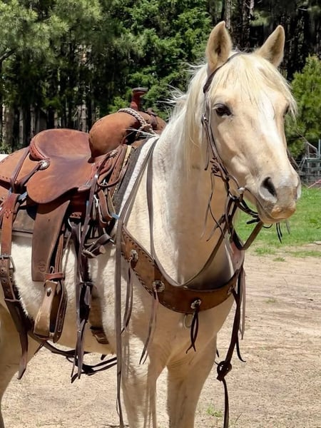 ONLINE AUCTION Place your bids at www.PlatinumEquineAuction.com Starting Bid $3500 Auction ends April 27th, 2025 Need a new saddle? Check out White Rock Saddles on our website or Facebook! We are proud to offer “Boot Scoot N Champ” or Boots as we call him for short. He is the most gorgeous jaw dropping buckskin gelding that you will lay your eyes on. Anywhere this boy goes he is greeted with “wow you’re beautiful” and he loves the attention! Boots is registered with the American Quarter Horse Association. His papers go back to the well known “Skipa” Boots has many money earners on his papers, if you take him to the show ring he’s sure to prove results! He is 5 years old and will mature at 15.1hh. Boots is not only bred to a T, conformationally correct, and stunning he is also fancy broke, fun and handy enough for a cowgirl! He will move right off of your seat and leg. His transitions both upward and downward are effortless. He will lope right from a walk and stop on whoa. Boots has a soft mouth and will ride in any bit from a simple snaffle to a curb. This boy is an all rounder and can head any direction. Boots is quick on his feet and very catty along with being quick to pick up anything you throw at him. He has been started on the barrels as well. He’s got plenty of miles out on the trails. Boots has been to many local metro and state parks. He’s willing to lead or follow in a group or ride out alone. Boots has been roped off of and done some basic ranch work. Give this boy a bath and take him to the show ring or just enjoy a relaxing trail ride or get him in the barrel racing/roping pen. He’s fun for the more experienced rider but has a sensible mind. He has recently started his English training and is doing amazing. He jumps a 10 every time! This boy is the definition of an all around horse. Please enjoy his video as he can speak for himself. Located in Howell Michigan 48855 call or text Ellesse Schwartz at 248-390-6831 with any questions. Shipping is avaliable anywhere in the US. ONLINE AUCTION Place your bids at www.PlatinumEquineAuction.com Starting Bid $3500 Auction ends April 27th, 2025 Need a new saddle? Check out White Rock Saddles on our website or Facebook!