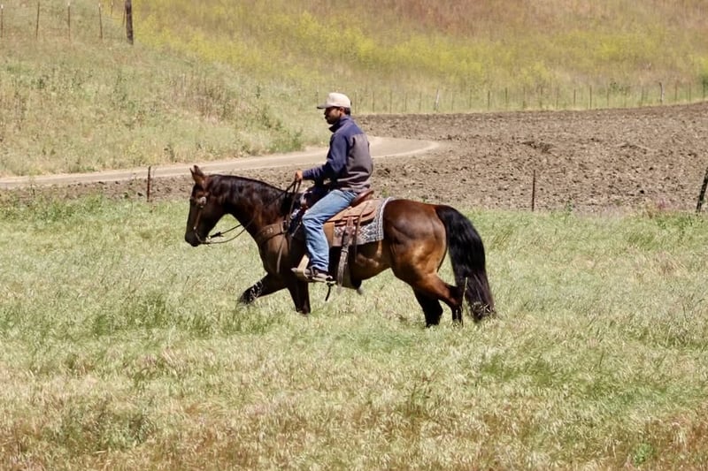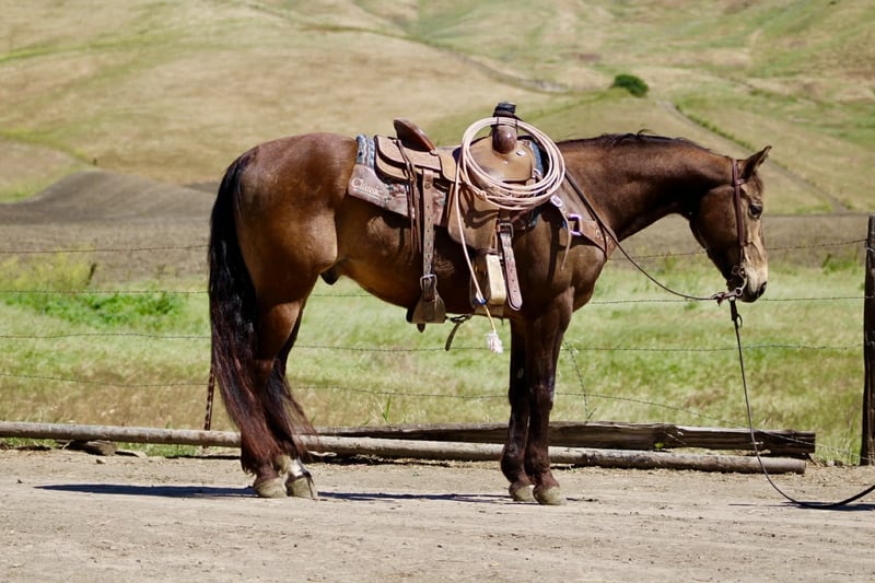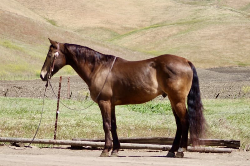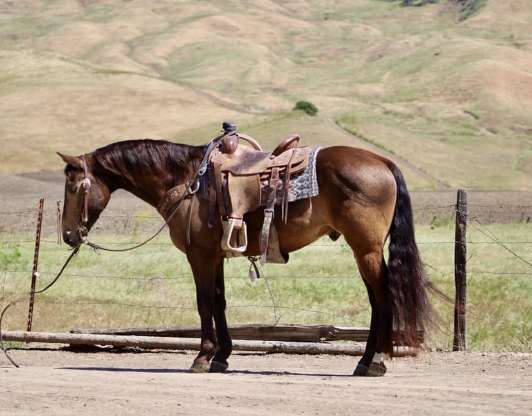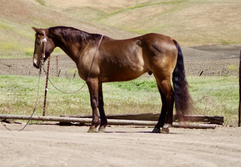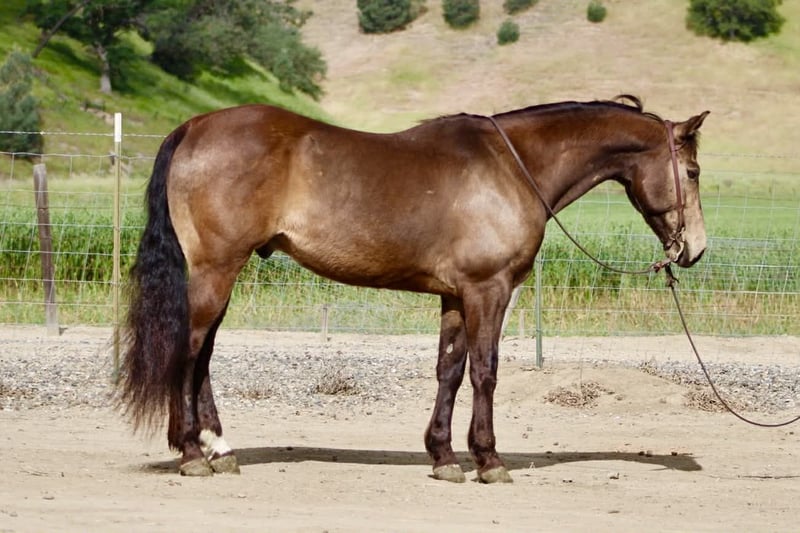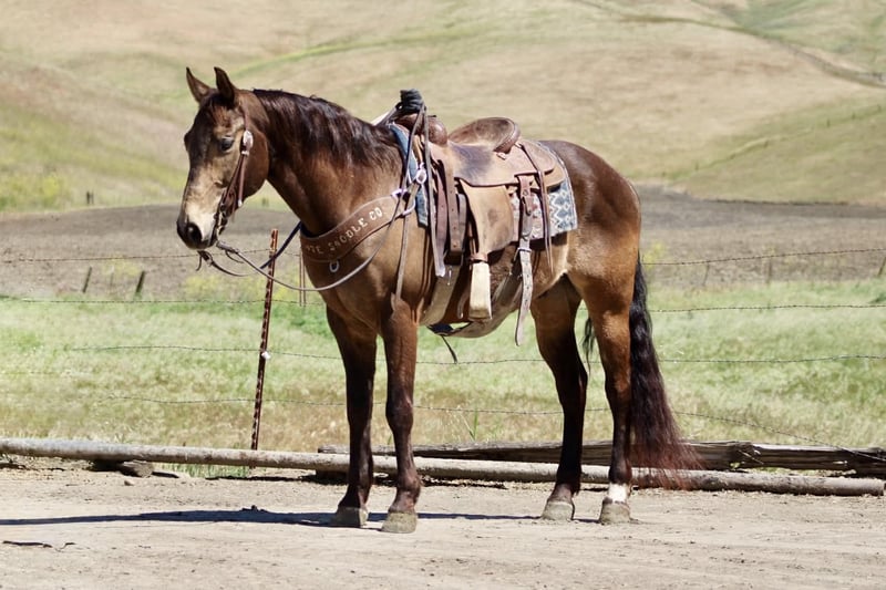 "AVAILABLE ON ONLINE HORSE AUCTION AT www DOT PlatinumEquineAuction DOT com BIDDING OPEN NOW thru SUNDAY | APRIL 19TH! *Final price will be determined on auction site* CONSIGNOR CONTACT INFO: Longhorn Ranch 831-537-1915 LOCATION: Paicines, CA CLYDE 10-Year-Old Buckskin Gelding • 14.3 Hands Good horses don’t need a lot of explaining—and Clyde is one of them. Clyde is a striking 10-year-old dark sooty buckskin standing 14.3 hands, with rich color, dark points, and a kind, steady expression that makes you feel comfortable right from the start. He’s the kind that doesn’t need any fuss—you get on him and he just makes sense. This gelding is the definition of handy and dependable—the kind everyone’s hoping to find and the kind that’s hard to replace. Clyde has been enjoyed on the trails, used for light ranch work with cows, and ridden in all kinds of country. He’s steady, relaxed, and carries himself with a quiet confidence that makes every ride easy. The kind you saddle up without a second thought… and end up riding longer than you planned. Obstacles? He’s been there, done that… and doesn’t see what all the fuss is about. Tires, logs, tarps, and anything else you want to point him at—he handles it with a level head and a willing attitude. Out on the trail, Clyde is sure-footed and happy to go wherever you point him. Rocks, hills, water crossings, wildlife—he stays honest and relaxed through it all. Whether you’re riding down the road or out in the hills, he treats it like just another easy day. He’s got a solid stop, a smooth, comfortable lope, and is coming along nicely in his turnaround with light cues. He’ll head out alone without issue and stays the same dependable partner every time. In the arena or around cows, Clyde is soft, responsive, and uncomplicated. He rides with a forgiving feel that works for a wide range of riders. And his personality is just as good as his ride. Clyde is gentle, kind-minded, and easy to be around. Easy to catch, easy to tack, and easy to enjoy. He loads, hauls, ties, and handles everyday life like he’s done it forever. No drama, no attitude, no nonsense—just a really good gelding that makes life simple… which is getting harder to find these days. Dark buckskin with eye-catching presence Gentle, steady, and easy to ride The kind that quietly becomes everyone’s favorite If you’ve been looking for a dark buckskin gelding that’s as dependable as he is good-looking, Clyde is worth a serious look. Longhorn Ranch Dina • 831-537-1915 Paicines, California Nationwide Shipping Available