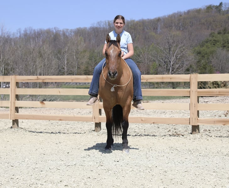 ⚜️𝐭𝐡𝐞 𝓔𝓵𝓲𝓽𝓮 𝐒𝐩𝐫𝐢𝐧𝐠 𝐂𝐥𝐚𝐬𝐬𝐢𝐜⚜️ Happening now thru MONDAY | APRIL 20th - Available EXCLUSIVELY on HorseBid's website! For more details and to register visit: www.Horsebid.com CONSIGNOR CONTACT: MC Quality Riding Horses 330-307-0323 LOCATION: North Bloomfield, OH BREED: Quarter horse REGISTERED: No REGISTERED NAME: Corndog COLOR: Dun HEIGHT: 15 AGE: 10 GENDER: Gelding Every once in a great while, you come across a horse that truly stands above the rest. I’m proud to offer a once-in-a-lifetime opportunity to own one of the best horses I’ve ever had the privilege to own and ride — Corndog. Corndog is a 10-year-old dun gelding standing 15 hands tall. Horses like him are few and far between. You can search for years and still not find another with this kind of versatility, honesty, and natural ability. Corndog rides English, Western, bareback, bridleless, and at liberty. Corndog has a solid foundation in liberty work. His liberty work is something special. He will join up, follow you willingly, and respond to body cues with no halter, no lead, and no pressure. He mirrors your movement, stays hooked on, and genuinely wants to be with you. This is not something that can be forced — it comes from his natural disposition and the kind of mind he has. Horses that are this honest and connected are few and far between. Plenty of horses get labeled “once in a lifetime,” but Corndog truly is the real deal. He is a standout in every sense of the word. Corndog is the kind of horse that works for any level rider and any age rider. He has the training and buttons that experienced riders appreciate, yet he is kind, honest, and safe enough to confidently take care of beginners. He is the go-to horse in my barn for everyone in my family. Every person who rides him enjoys him and loves his quiet, willing disposition. He has been ridden by riders of all ages and has proven himself time and time again with each one. We are not afraid to turn the kids loose on him. My 5-year-old niece can confidently lead Corndog around with our little cousin in the saddle, and she can also ride him by herself without any issue. The older kids have loved taking him out on the trails and have gained so much confidence and experience in the saddle with him. We have genuinely loved our time with Corndog. He is every bit as gentle as he is versatile, and I truly believe he will excel in any direction someone chooses to take him. This gelding has also been used in every aspect of ranch work. From loading trucks to sorting cattle, Corndog absolutely loves his job. He is very cowy, has been roped off of in the pasture, and has been used to doctor and sort. He is especially handy when it comes to penning cattle and is the kind you can rely on to get the job done right.He is comfortable with kids playing around him, dogs roughhousing, and all sorts of everyday commotion. From lawn mowers to semis, Corndog has seen it all. He has been around all types of farm equipment and handles it with ease. He is happy to do any job asked of him and has also been a huge help in training other colts. Corndog is comfortable with a tarp, crosses logs and bridges, is not bothered by the crack of a bull whip, and tolerates all the everyday shenanigans that happen around here. Even with extended time off, you can pull him out of the stall or pasture, saddle him up, and ride right off with no issues. Corndog stalls well, gets along well with other horses in turnout, is easy to catch, and is an all-around pleasure to have in the barn. He is accustomed to small pets, wildlife, and both small and large livestock. He stands quietly to be groomed and tacked, with or without cross ties, and he will side-pass over to a fence or mounting block for easy mounting. Under saddle, Corndog is athletic, balanced, and carries himself beautifully. He is just as enjoyable in the arena as he is on the trail, and he is equally comfortable riding in town through traffic. He correctly picks up both leads on cue, pivots, side-passes with ease, has a lovely extended trot, and lopes beautiful circles. Corndog is the kind of horse I would trust absolutely anyone with. He is safe, seasoned, and dependable. Whether you want to trail ride through the Rocky Mountains, enjoy a dependable family horse, or step into either the Western or English show pen, Corndog is more than capable. He has a habit of exceeding expectations, and there are very few horses you can honestly say that about. On top of all of that, he is a beautiful individual. His eye-catching dun color, big round hip, kind eye, and balanced conformation only add to everything else he brings to the table. He is the complete package. Corndog is great for the veterinarian and farrier and sells 100% sound in every way. He is current on Coggins. I want Corndog to have an exceptional home because he truly deserves one. I am confident that whoever ends up with him will love him just as much as we have. We are located in North Bloomfield, Ohio. For more information, please call or text McKenzie at (330) 307-0323. I could write a book about this amazing gelding, so I encourage you to reach out with any questions. I would be more than happy to tell you more about my best bud, Corndog.