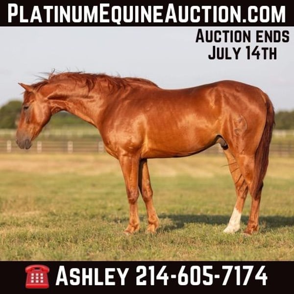 ONLINE AUCTION Place your bids at www.PlatinumEquineAuction.com Starting Bid $3500 Auction ends July 14th, 2024 Need a new saddle? Check out White Rock Saddles on our website or Facebook! “Güey” aka: “Homey”- 15H, 8 year old grade sorrel gelding “Güey” (yes, as in Homey) is as solid no-nonsense and broke as they come. This is literally the exact same horse, every single time, with anyone on him, in all situations. He is solid and steady and has been a ton of miles. He is about as uncomplicated to ride as they come, has a simple one-hand handle, simple point and shoot neck rein, easy style, and a great hard quick stop. Güey has been ridden in town used on the ranch, trail ridden, has been to playdays, ropings, rodeos, and has been in many parades. He hops right on the trailer, stands tied, and enjoys going places. He has good manners on the ground, easy to groom, saddle, bridle, stands like a statue for mount and dismount, walks off quiet on a loose rein, and is happy to leave the barn or ride out alone. Güey gets along well with other horses. He is turned out in a small rotating set of horses right now, and he is never any drama. If you are looking for one to just turnout grab once in a while and be able to enjoy yourself, Güey would be a great fit, he has years and years of miles of experience, and he is still the perfect age and has many years left. Güey is just the right size at 15H, and he is a great build that is stout enough, but still comfy and easy to guide around. Güey was just shod this past week, his teeth were also done by an equine dentist last week, and he had his sheath cleaned, his ears treated for ticks, and he was also power packed wormed. He is good to shoe, has great feet and also goes well barefoot – if his new owner prefers him to be barefoot, we can have his shoes pulled and trim him prior to him heading to his new home. He will arrive at his new home up-to-date and ready to go to work! We are experienced, knowledgeable sellers, and we can help with quickly arranging affordable shipping to any buyer’s location – we have experience shipping worldwide – including regularly to Hawaii, Canada, Mexico, Europe, and South Africa. Please call Buster Horses Ashley 214-605-7174 Located in Weatherford, TX. ONLINE AUCTION Place your bids at www.PlatinumEquineAuction.com Starting Bid $3500 Auction ends July 14th, 2024 Need a new saddle? Check out White Rock Saddles on our website or Facebook!