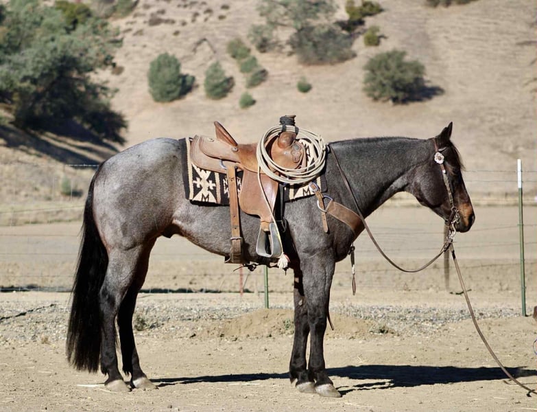 ONLINE AUCTION Place your bids at www.PlatinumEquineAuction.com Starting Bid $3500 Auction ends November 23rd, 2025 Need a new saddle? Check out White Rock Saddles on our website or Facebook Arctic Jack – Cool-Headed, Kind-Hearted, and absolutely stunning If cool, calm, and collected had a name, it’d be Arctic Jack. This 9 year old striking blue roan gelding stands 15 hands, built solid and steady as they come, with a look that’ll make you do a double take and a mind that’ll make you grin. At 9 years old, he’s the kind of horse that makes every ride feel easy — the steady-eddy type that’s just plain enjoyable to be around. Jack’s the guy who never gets in a hurry unless you ask him to. He’s been used for gathering, sorting, checking fences, and the usual ranch chores — and he does it all with that quiet confidence that says, “Don’t worry, I’ve got this.” He’s great alone, happy in a group, and won’t bat an eye at water, bridges, dogs, or traffic. Flags, tarps, or the neighbor’s leaf blower? He’s not impressed. In the arena, Jack rides soft and smooth — picks up his leads, stops light, and stays between the reins without any drama. He moves off your leg willingly, keeps his cool, and has that perfect mix of “broke enough to enjoy” and “honest enough for anybody.” He ties, clips, bathes, and stands like a gentleman for both the farrier and vet. He tacks up easy, hauls anywhere, and handles time off like the kind of horse you wish you had a dozen of. Whether he’s in a stall or out in the pasture, he’s the same good-minded gelding every single day. And let’s be honest — it doesn’t hurt that he’s one of the most beautiful blue roans you’ll ever lay eyes on. He’s got that movie-star look with a ranch horse attitude — cool, reliable, and just the right amount of swagger. If you’re looking for a partner that makes every ride smoother, safer, and a whole lot more fun, Arctic Jack is your guy. 📍 Located at Longhorn Ranch – Paicines, California 📞 Contact: Dina 831-537-1915 ONLINE AUCTION Place your bids at www.PlatinumEquineAuction.com Starting Bid $3500 Auction ends November 23rd, 2025 Need a new saddle? Check out White Rock Saddles on our website or Facebook