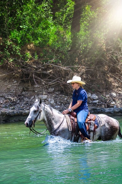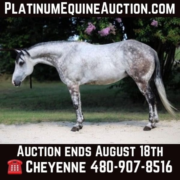 ONLINE AUCTION Place your bids at www.PlatinumEquineAuction.com Starting Bid $3500 Auction ends August 18th, 2024 Need a new saddle? Check out White Rock Saddles on our website or Facebook! Just like America’s favorite dessert, you’re in for a treat when you ride this icy gray! Say hello to Blizzard, a stunning 8-year-old dapple gray gelding who is the right blend of looks, experience, and ability. With countless miles AND states under his belt, Blizzard is a trail riding pro. Over the years he has navigated the diverse terrains of Texas, the rolling hills of Kentucky, and the scenic paths of Indiana with confidence and ease. It’s always a blast out on the trail with Blizzard – he loves the water and is not afraid to cross it or even swim across deeper parts of it. He steps over logs, and he is sure footed, never failing to secure his rider in rocky or unstable terrain. Earlier this summer he carted a complete beginner down the trail for 3 days with a group. Blizzard has ridden down congested streets with traffic, pedestrians, and semi-trucks cruising on by. Been exposed to cattle, dogs, etc. He enjoys being outside and will go all day long! Blizzard has good feel and responsiveness in the arena. Has a slow jog, picks up both leads and lopes nice circles. His smooth gaits and natural abilities make him suitable for an array of disciplines. Blizzard has spent most of his life with a 12 year old girl on his back going on trail rides & attending local play days & 4H shows. You’ll have fun with him under English tack too! We’ve even taken him over a few jumps & used him at a couple local schooling shows. Whatever he does & wherever he is, he’s sure enough a standout and is guaranteed to turn heads. I have never received more compliments ones looks before – everyone loves him & has to ask about him! Blizzard loads, hauls, and stands for the farrier like a pro. He is fond of treats, favors bath time, basks in the pleasure of a good grooming sesh, is easy to fly spray… he treasures spending time with people in any facet he can & is always the first horse to greet me in the mornings! All care for Blizzard has been thorough throughout his life (records are available). A perfect 15 hands, this dreamy gelding is the perfect size for all riders. This horse is in his prime, and you’ll have the opportunity to enjoy him for many years to come. Blizzard is located in Stephenville, TX & we can help arrange transportation to any location! For any questions regarding Blizzard or transportation please contact C Fork Horses Cheyenne 480-907-8516 (call or text) ONLINE AUCTION Place your bids at www.PlatinumEquineAuction.com Starting Bid $3500 Auction ends August 18th, 2024 Need a new saddle? Check out White Rock Saddles on our website or Facebook!