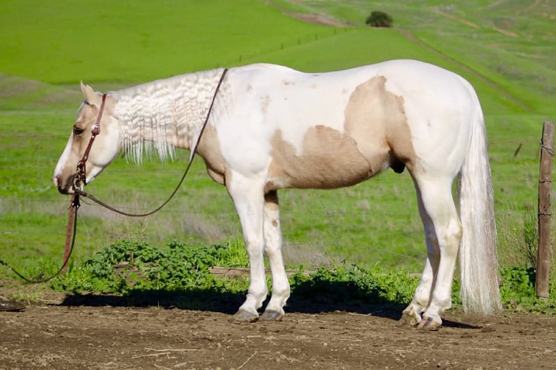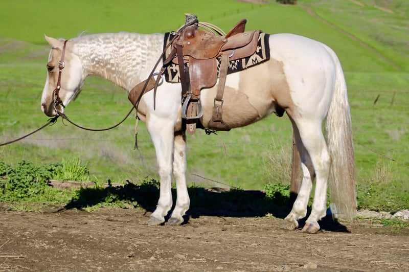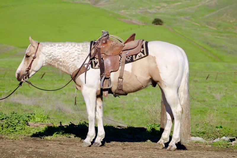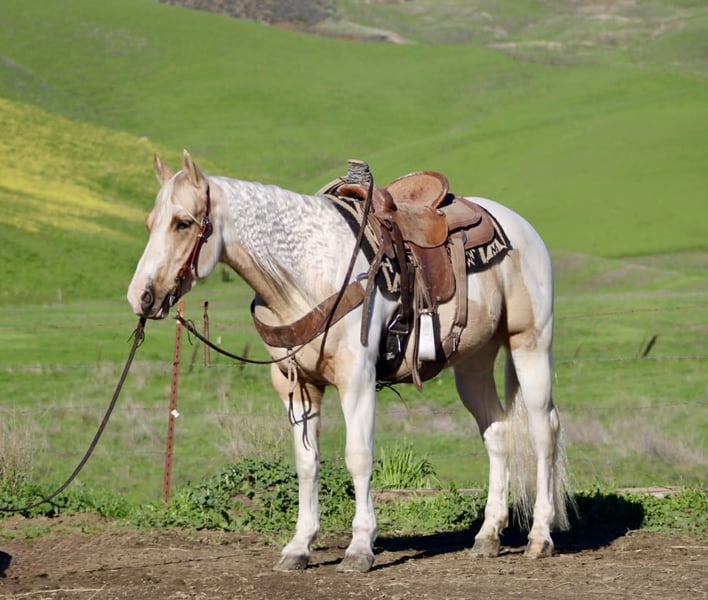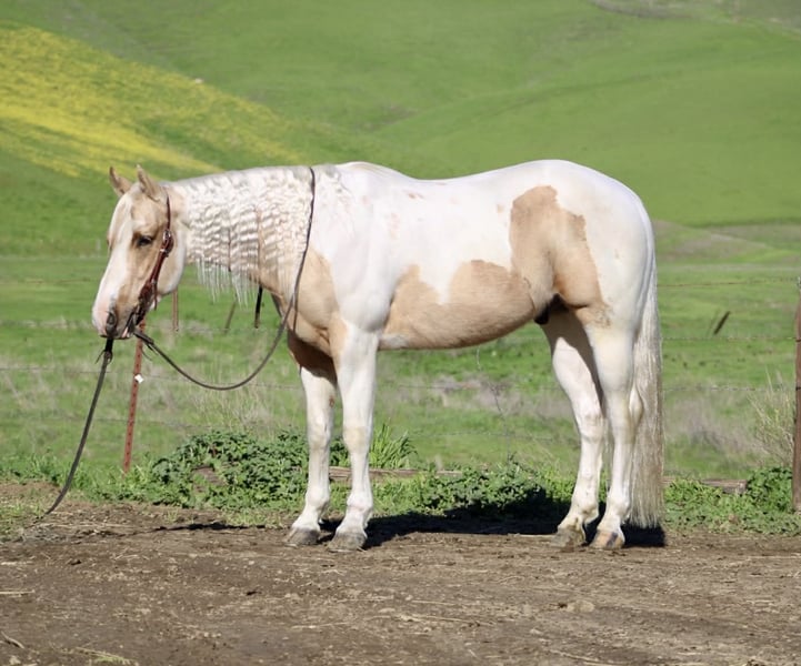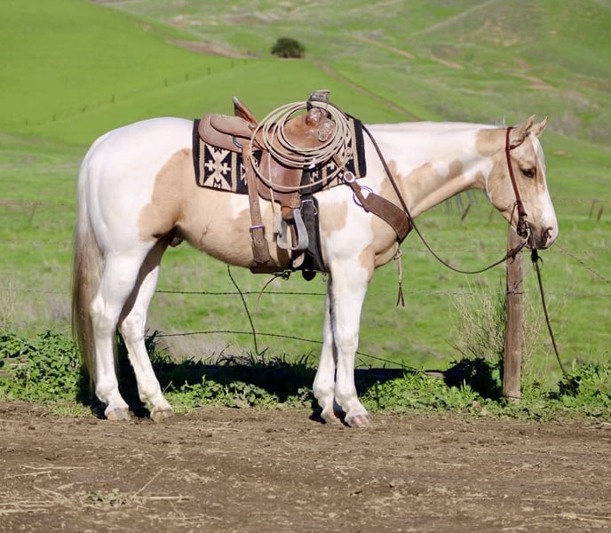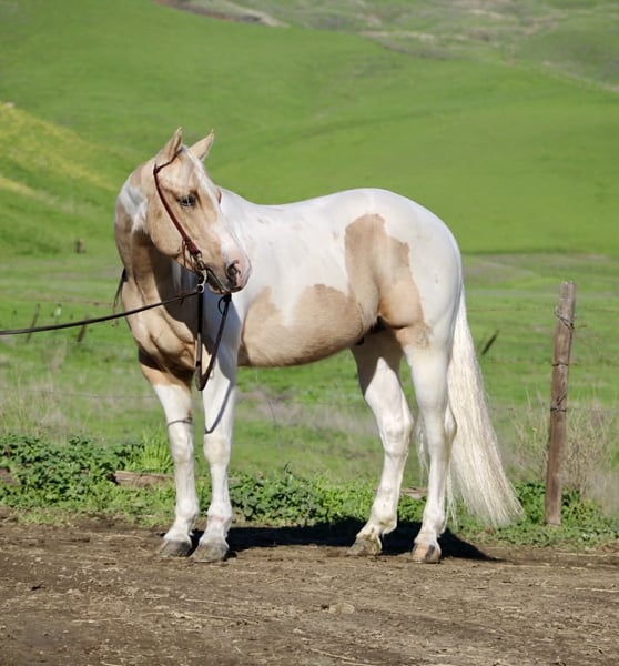 ONLINE AUCTION Place your bids at www.PlatinumEquineAuction.com Starting Bid $3500 Auction ends January 25th, 2026 Need a new saddle? Check out White Rock Saddles on our website or Facebook A Golden Gelding Wish a Golden Heart (and Major Puppy-Dog Energy) 8 Years Old • 15 Hands • Palomino Paint Gelding If horses had a “golden retriever” category, Butters would be the poster child. He’s safe, kind, and steady—and yes, he absolutely believes everyone is his friend. Butters is a beautiful palomino paint, with a rich golden coat and a long, flowing mane and tail that shine like diamonds in the sun. He’s the kind that catches your eye first, then wins your heart without trying. Under saddle, Butters has an easy, forgiving way of going that makes riders relax without realizing it. He’s calm, patient, and naturally adjusts to his rider like it’s his job (because he takes that job very seriously). From kids to adults, beginners to experienced riders, he’s the type that quietly takes care of his people. On the trail, Butters is dependable and unfazed. He rides confidently alone or in a group and is happy leading the pack, following behind, or cruising quietly in the middle. Tarps, flags, bouncy balls, obstacles, water crossings, logs, narrow paths, wildlife, traffic, towns, machinery, and new environments are all no big deal to him—he takes it all in stride with a relaxed, “we’ve got this” attitude. In the arena, he’s professionally broke with smooth, comfortable gaits and soft transitions. He rides collected, keeps a nice headset, and is easy to guide one-handed. He’s not in a hurry, not complicated, and not interested in causing drama—he’s here for a pleasant ride and a good day. Butters has also been used around the ranch and has been started roping, proving he’s more than just cute. He’ll step up and work when asked, then happily go back to babysitting duty without missing a beat. On the ground, he’s exactly what you’d expect: easy to catch, good for the farrier and veterinarian, stands tied quietly, loads well, and enjoys attention. He gets along well with other horses and does well in a stall or pasture. If he could carry his own brush, he probably would. Butters will ride bareback, double, or in a halter and stays the same steady, happy gelding every time. He’s the kind of horse families search for—safe, trustworthy, fun to be around, and genuinely enjoyable to own. 📍 Located in Paicines, California 📞 Longhorn Ranch – Dina 831-537-1915 We can help arrange safe, reliable transportation with reputable haulers to get your new horse home anywhere in the United States. ONLINE AUCTION Place your bids at www.PlatinumEquineAuction.com Starting Bid $3500 Auction ends January 25th, 2026 Need a new saddle? Check out White Rock Saddles on our website or Facebook