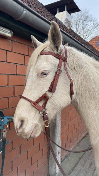 Schweren Herzens suche ich für meinen hübschen Quarter Horse Wallach „Jo Jet King Lli“, genannt Camillo, ein neues, liebevolles Zuhause. Camillo wurde am 01.05.2016 geboren, ist 1,54 m groß und besticht nicht nur durch seine außergewöhnliche Perlino-Farbe, sondern vor allem durch seinen freundlichen und ausgeglichenen Charakter. Er besitzt volle Papiere der AQHA. Ein Bild der Abstammung setze ich nachher als letztes Bild noch rein. Camillo ist western geritten und wird aktuell freizeitmäßig bewegt. Er bringt jedoch definitiv Potenzial für mehr mit, egal ob für ambitionierte Freizeitreiter oder kleinere Turniere. Neben dem Reiten kennt er auch Bodenarbeit und Spaziergänge. An Hunde ist er auch gewöhnt und hat auch mit Reitbegleithunden kein Problem. Im Gelände zeigt sich Camillo sehr brav, unerschrocken und zuverlässig – auch alleine ausreiten ist für ihn kein Problem. Eine absolute Lebensversicherung. Besonders hervorzuheben ist seine kinderliebe und vorsichtige Art, wodurch er sich auch gut als Familien- oder Freizeitpferd eignen würde. Vom Temperament her ist er eher ein ruhiger, gemütlicher Vertreter, der stets lieb im Umgang ist. Im Alltag: - Hufpfleger (er läuft bei uns barhuf) und Tierarzt sind problemlos - Verladen funktioniert mit etwas Ruhe und Geduld (nicht seine Lieblingsbeschäftigung) - Rangniedrig und gut sozial in der Herde Gesundheit: - gesund - Impfungen im Januar aufgefrischt - Zähne werden im April gemacht - regelmäßig entwurmt Auf Wunsch kann selbstverständlich auf eigene Kosten eine AKU von einem Tierarzt Ihrer Wahl gemacht werden. Haltung: Aktuell steht Camillo im Offenstall, was er sehr liebt und was ich mir auch für seine Zukunft wünschen würde. Alternativ wäre auch eine Paddockbox mit täglichem Auslauf passend. (Nicht nur eine Stunde zum reiten raus). Im Sommer verträgt er 24/7 Weidegang problemlos (bei uns selbstverständlich mit Heuzufütterung). Im Winter trägt er aktuell eine Decke. Der Verkauf erfolgt ausschließlich aus gesundheitlichen Gründen meinerseits, da ich ihm leider nicht mehr gerecht werden kann. Daher wünsche ich mir für ihn einen bestmöglichen Platz, am Besten auf Lebenszeit. Standort: Hatten Zubehör kann nach Absprache gerne mit übernommen werden. Bei ernsthaftem Interesse freue ich mich über eine Nachricht und ein persönliches Kennenlernen. Für mich gilt definitiv Platz vor Preis, trotzdem sollte es realistisch bleiben.