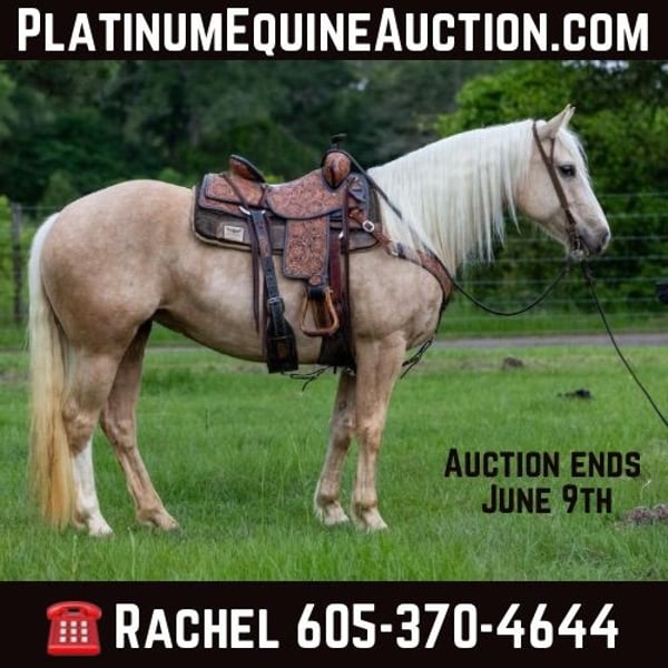ONLINE AUCTION Place your bids at www.PlatinumEquineAuction.com Starting Bid $3500 Auction ends June 9th, 2024 Need a new saddle? Check out White Rock Saddles on our website or Facebook! Barbie is a 8 year old crossbred mare, she stands 15.1 hands tall and is stout! Barbie is absolutely gorgeous and will catch everyone’s eye everywhere you take her! Not only is Barbie beautiful she is also very handy to have around, she has been used on the ranch for all aspects of ranch work, she is very handy broke and can get a job done! She has also been trail rode everywhere, she crosses the creeks, logs and bridges without any issues and is a true joy to ride. Call or text TR LIvestock Rachel 605-370-4644 for more info! Located in Rusk, TX. ONLINE AUCTION Place your bids at www.PlatinumEquineAuction.com Starting Bid $3500 Auction ends June 9th, 2024 Need a new saddle? Check out White Rock Saddles on our website or Facebook!