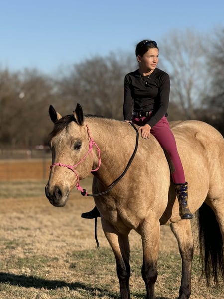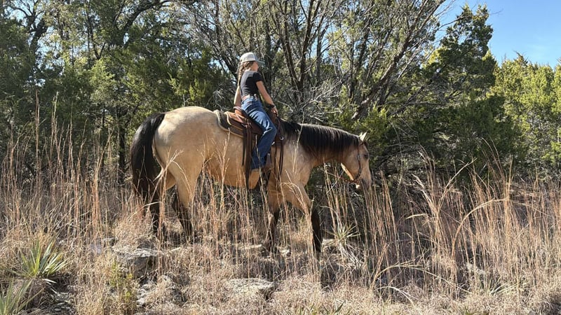 💎 𝐓𝐇𝐄 𝓓𝓲𝓪𝓶𝓸𝓷𝓭 𝐒𝐇𝐎𝐖𝐂𝐀𝐒𝐄 💎 Happening now thru MONDAY | FEBRUARY 23rd - Available EXCLUSIVELY on HorseBid's website! For more details and to register visit: www.Horsebid.com CONSIGNOR CONTACT: Combs Quarter Horses 727-741-0559 LOCATION: Cleburne, TX BREED: AQHA REGISTERED: Yes REGISTERED NAME: DunIt Like Freckles COLOR: Buckskin HEIGHT: 15.3 AGE: 10 GENDER: Gelding Talk about the whole package! Clifford is one that will truly check all the boxes! DunIt Like Freckles (Dun It Like Lena x Chickasa Freckles) Clifford is an amazing 10yr old 15.3h buckskin gelding! Clifford is by Dun It Like Lena who is by the one and only NRHA hall of fame Hollywood Dun It! Out of Chickasa Freckles by the NCHA money earning stallion Commander Freckles! From the AQHA to the local shows to the trail rides.. this guy will keep you in the spotlight! DISPOSITION: Clifford is the definition of a loving, easy going big gelding. He loves bath time, he loves belly scratches and he will smile for cookies! Clifford has a great in your pocket personality thats easy to love! Clifford stands like a statue for grooming, washing, saddling, mounting block and he’s extremely easy to bridle! Clifford is well suited for all ages and sizes. From the lesson barns, the show barns and the trail riding homes.. I think everyone is sure to enjoy this big beautiful boy! WESTERN EXPERIENCE: Clifford was professionally started and trained as a Reiner. He’s got all the fancy bells and whistles without being overly sensitive to riders cues. He’s more like a slow motion Reiner that excels in the ranch riding/pleasure. Clifford has phenomenal transitions with nice, easy, smooth consistent gaits. He’s got a very nice easy jog and a very comfortable lope. Clifford will ride off of leg or seat cues for the more advanced riders or you can just neck rein him around for those learning the ropes. When you’re ready to slow down just say the word whoa and Clifford will come to a safe, easy stop. Clifford really stands out in the ranch classes! If you just want to trail ride you’ll really enjoy every time you climb onboard! Clifford ties quietly to the side of the trailer for convenient tacking up. No spook or silly business. Clifford doesn’t mind the wildlife, cows, traffic, dogs or any other things you see out on the trails. He loves the water, he goes up, over, under and through anything you point him at! He will ride out along or in a group. He will also ride front, back or middle of the pack. You can also lope away leaving him behind or run up behind him.. nothing bothers him! ENGLISH EXPERIENCE: Clifford is just starting his English riding career and he not only loves it.. he’s amazing under English tack! He will absolutely stand out in the HUS classes! He’s amazing! Clifford also goes right to the jumps! He’s brave, easy and honest! Clifford has a bright future in the Hunter ring! UPKEEP: Clifford is currently eating free choice alfalfa and 1 1/2 scoops of basic pellets twice a day. No supplements or maintenance required to keep this guy sound! We do have shoes on Clifford all the way around as a personal preference. Would be happy to pull back shoes before hauling. TURNOUT: Clifford is quiet in a group or single turnout. Not aggressive and doesn’t go looking for a fight. He’s very playful and really likes to put on a show for the camera! Just a happy go lucky guy! GROUND MANNERS: Clifford is a perfect gentleman on the ground. He’s very aware of personal space and little toes! He’s quiet and gentle enough for even the little ones to tote around. Loads and unloads easily. Stands single tied and cross-tied. BAD HABITS/ VICES: Clifford has no bad habits or vices. No bite, kick, rear, buck or bolt. TACK: Clifford will ride bareback, English or western. He will ride in a halter and lead rope, a snaffle, a short shank snaffle or just about anything you want to try. He’s really not picky. BOARDING: Temporary board is available to arrange pick up. Absolutely no rush. Coggins and health certificate will be provided and in hand for hauler. Please feel free to contact me for any further information at 727-741-0559. This is a Florida number that I’ve had for years.v