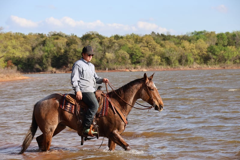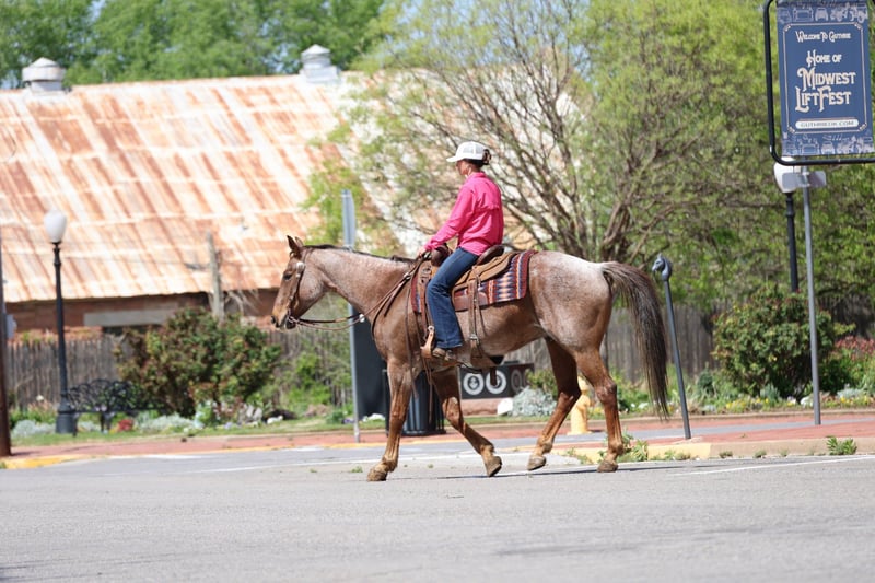 ▪️▫️◾️𝐭𝐡𝐞 𝑴𝒂𝒚 𝐒𝐞𝐥𝐞𝐜𝐭◾️▫️▪️ Happening now thru MONDAY | MAY 4th - Available EXCLUSIVELY on HorseBid's website! For more details and to register visit: www.Horsebid.com CONSIGNOR CONTACT: Isabella Dolago 860-942-0623 LOCATION: Ripley, OK BREED: QH REGISTERED: Yes REGISTERED NAME: KS DANDY DELUXE COLOR: Red roan HEIGHT: 15.1 AGE: 10 GENDER: Gelding Meet Jack the red roan gelding who’s got the looks, shape, ride, and personality to win you over! Jack is a 10 yr old gelding standing at 15.1 hands and weighing 1125lbs! He’s built phenomenally with a thick long neck, clean straight legs, big hip, and gorgeous red roan coat… the cherry on top! You’ll never have to stress about this horse either, he’s a very easy keeper who gets along with any horse and person and will meet you right at the gate! Jack loves his people he’ll be right there waiting for you every morning in the barn! If he was a person he would have the most polite manners! He minds his own business but also wants to be right there with you, he’s a respectful guy! Jack is one you can truly call kid broke!! Anyone in the family can saddle this gelding and lope him right out of his tracks with no worries! He rides around soft and correct, turns around and has a good stop! You can ride him in nearly any bit! He’s broke enough to head, heel, and play day off of! Jack has done it all from doctoring cattle on the wheat pasture, gathering cattle, loading trucks, elk hunting in the mountains, to play days and long days! He’s your right hand man you point where you want to go and no matter what he’ll get you there! He’ll walk through water, logs, ditches, brush, town, anything! He has no spook, buck, or rear. This horse is truly a gentle ranch horse deluxe!