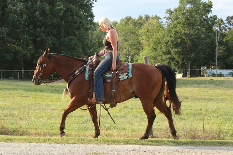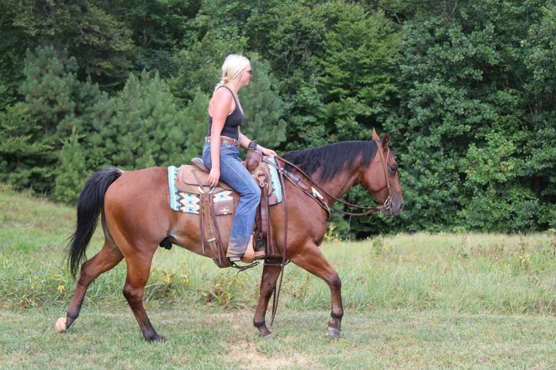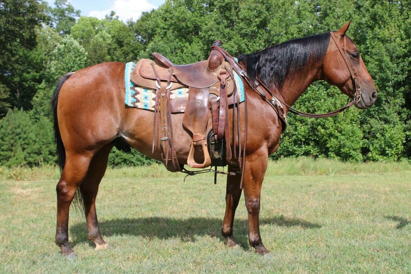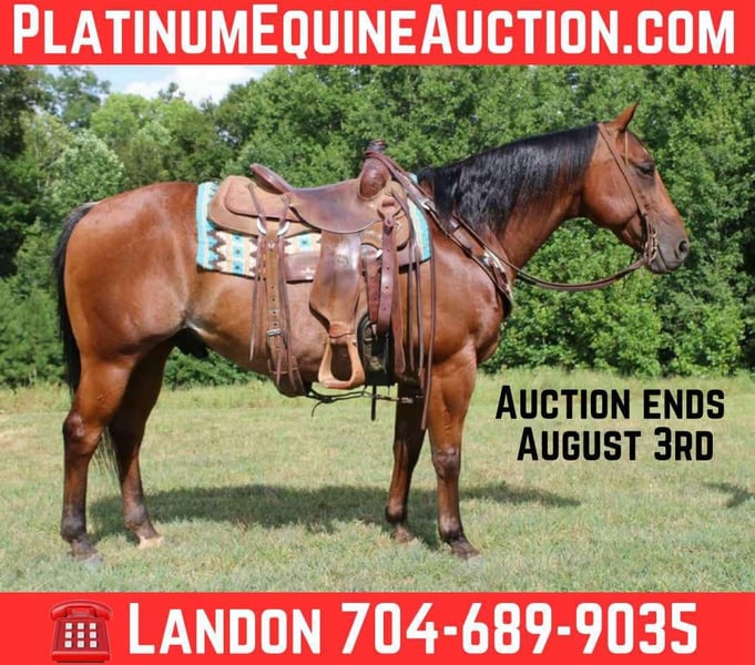 Stout Built Bay Roan, Ranch, Trail Horse, Safe!Chilli is a grade, bay roan, 10year old gelding standing at 14.2 tall. Chilli is quiet to be around, good with his feet, and a gentleman on the ground. He’s been exposed to almost anything you can imagine including guns, whips, tarps, flags, ropes, or whatever else might look strange to a horse. He wants to ride slow, and relaxed. He picks up both leads nicely and lopes off with ease. Chilli really shines, and excels being out on the trails and in the arena. He’s calm, steady, and quiet handling himself in rough country, maneuvering with ease over bridges, bogs, crossing water, etc… Chilli has been ridden by all levels of riders, and is forgiving of mistakes made by those who are new, helping to build their confidence. Whether you’re on the ranch, and in the arena, everyone notices him by his looks, and quiet demeanor. Chilli is a seasoned trail horse he’s been hauled to numerous state parks and been on camping trips! Located in Cherryville NC can ship anywhere! For more info, to schedule a time to come see him or to make a Buy It Now Offer Call Landon with Maxwell Family Trail Horses 704-689-9035 for more info. Stout Built Bay Roan, Ranch, Trail Horse, Safe!