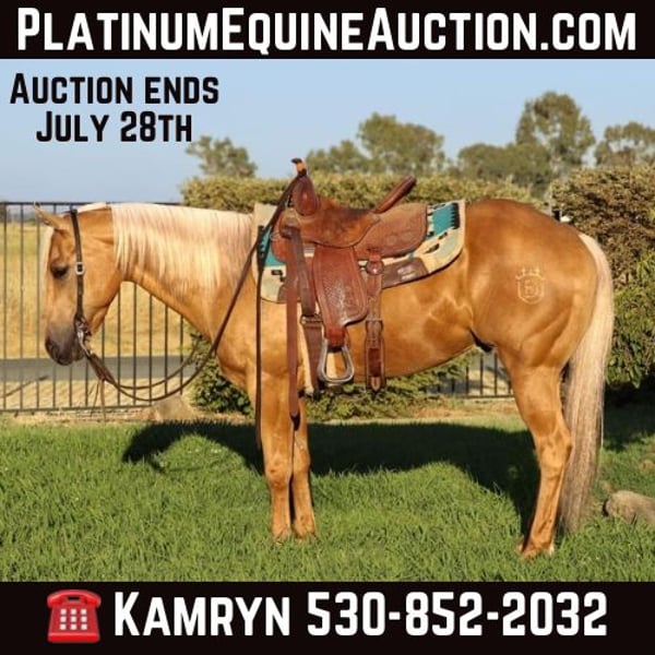 ONLINE AUCTION Place your bids at www.PlatinumEquineAuction.com Starting Bid $3500 Auction ends July 28th, 2024 Need a new saddle? Check out White Rock Saddles on our website or Facebook! Introducing 2-Chainz, the 9 year old 14.2 hand STOUT most breathtaking horse you’ll ever meet. This stunning beauty turns heads wherever he goes, combining the elegance of a Barbie dream horse with the magical charm of a unicorn. Searching for that perfect unicorn? Look no further—you’ve just found him! They all can’t be unicorns and rainbows but this guy is an exception! 2-Chainz is the epitome of versatility and reliability. He does absolutely anything and everything asked of him without hesitation. Whether you’re an experienced rider or just starting out, you’ll find him to be an absolute delight. We have taken him on countless adventures, from the redwoods to the beach and even along the side of cliffs—this guy is that trustworthy. One of his standout qualities is his bombproof nature. With a super smooth trot and canter, he’s perfect for riders with back issues. We’ve ridden him through bustling city streets with rushing traffic, semis, honking horns, and crowds, ridden through drive thrus, and he’s remained calm and composed. On the trails, he’s encountered bikes, hikers, wildlife, and waterfalls without a care. But it’s not just his performance that makes him special. 2-Chainz is a sweetheart who loves to be cuddled and kissed. He’ll nuzzle up to you for affection and adores little kids, lowering his head for them to pet and love on. Watching him close his eyes and stand contentedly as he receives attention is pure joy. He stands to be saddled, groomed, bathed, farrier. He loads himself up in the trailer and is always eager to go some where new. He will meet you at the gate before you even make it to the gate to grab him. 2-Chainz is a once-in-a-lifetime kind of horse, perfect for riders of all levels. Don’t miss your chance to own this exceptional guy. Your search for the perfect unicorn ends here! Contact Kamryn at KW Ranch and Performance Horses 530-852-2032. ONLINE AUCTION Place your bids at www.PlatinumEquineAuction.com Starting Bid $3500 Auction ends July 28th, 2024 Need a new saddle? Check out White Rock Saddles on our website or Facebook!