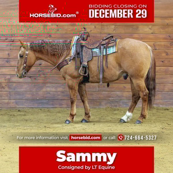 ⚜️ 𝓗𝓮𝓻𝓲𝓽𝓪𝓰𝓮 𝐖𝐢𝐧𝐭𝐞𝐫 𝓒𝓵𝓪𝓼𝓼𝓲𝓬⚜️ Happening now thru MONDAY | DECEMBER 29th - Available EXCLUSIVELY on HorseBid's website! For more details and to register visit: www.Horsebid.com CONSIGNOR CONTACT: LT Equine 724-664-5327 LOCATION: Miola, PA BREED: AQHA REGISTERED: Yes REGISTERED NAME: Set Him Up Right COLOR: Red Dun Roan HEIGHT: 14.3 AGE: 10 GENDER: Gelding ✨ Introducing Set Him Up Right — “Sammy” ✨ Sammy is a registered AQHA Red Dun Roan gelding with exceptional breeding, tracing back to Two Eyed Jack and Two ID Bartender. Not only is he well bred, but he also has the kind of quiet, willing mind everyone looks for. Standing 14.3 hands with a solid, correct build, Sammy has strong legs and great feet. He is truly an “in-your-pocket” kind of horse—friendly, kind, and eager to be around his people. He has excellent ground manners, leads quietly, moves off when asked, and happily follows you around the barn. Under saddle, Sammy is very well broke. He moves easily off leg pressure, side passes, opens and closes gates, and has a smooth, correct turnaround. He has a soft one-handed neck rein and one of the smoothest one-step lopes you’ll find. He rides just as nicely on a loose rein as he does when collected, setting his head naturally and moving beautifully. He walks, trots, and lopes willingly, picks up both leads with ease, and is confident wherever you point him—on the trail, alone or in a group, with no funny business. Sammy would make an excellent 4-H prospect in English, Western, or games, with the mind and versatility to succeed in many disciplines. If you’re simply looking for a safe, honest trail horse that anyone can enjoy, Sammy checks all the boxes. He is easy to handle in every way—picks up all four feet, stands well for the farrier and veterinarian, ties quietly, bathes, and hauls without issue. He does well stalled or turned out, gets along with other horses, and is low on the pecking order. There truly isn’t a mean bone in his body. ✅ Current on health evaluation ✅ Coggins ✅ Rabies & 5-way vaccinations Sammy is the kind that’s hard to find—safe, broke, kind, and versatile. A wonderful partner for the whole family Please give Sammy’s video a watch and if you have anymore questions please contact me 724-664-5327.