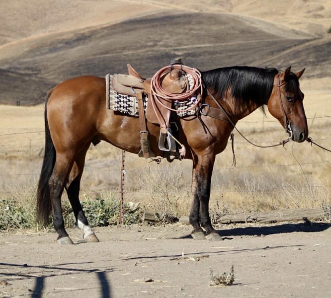 ONLINE AUCTION Place your bids at www.PlatinumEquineAuction.com Starting Bid $3500 Auction ends September 21st, 2025 Need a new saddle? Check out White Rock Saddles on our website or Facebook They say everything’s better with bacon, and this one proves it. Bacon is an 10 year-old, 14.3-hand dun gelding with tiger stripes on his legs, a coat full of dun factor, and the kind of presence that makes folks look twice. Bacon isn’t just a pretty plate — he’s steady, broke, and built to go anywhere. He’s crossed rocky trails, splashed through creeks, eased over bridges and logs, and marched right through tarps and pool noodles like he’s seen it all before. He carries a forward, ground-covering walk and an easy trot that eats up country without eating up your patience. In the arena, he’s as smooth as butter on a hot skillet. Picks up both leads, stops soft, backs light, and makes every transition feel easy. He’s the kind you hop on when you just want a relaxing, uncomplicated ride — but he still feels sharp enough to keep things fun. Outside, Bacon has gathered cattle and handled ranch chores with the same quiet, reliable style. He’s not a hothead, not pushy — just a worker with good manners and a good mind. On the ground, he’s the gentleman of the barn. He ties, bathes, hauls, stands for the farrier, and greets you at the gate. Whether stalled or pastured, he fits right in. Stout, balanced, and handy at 14.3 hands, Bacon is as versatile as he is flashy. Western, English, trail, or ranch work — this gelding is ready to season your life with the right kind of flavor. 📍 Longhorn Ranch – Paicines, CA 📞 Dina – 831-537-1915 ONLINE AUCTION Place your bids at www.PlatinumEquineAuction.com Starting Bid $3500 Auction ends September 21st, 2025 Need a new saddle? Check out White Rock Saddles on our website or Facebook