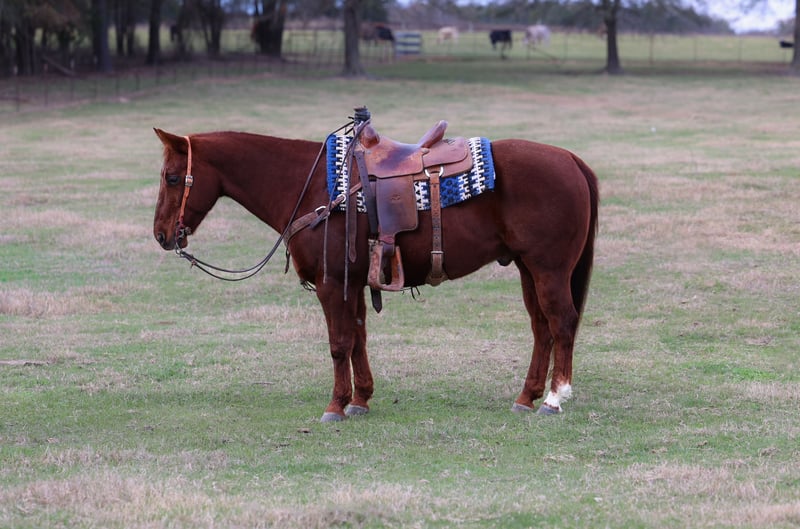 ⚜️𝐓𝐇𝐄 𝓗𝓮𝓻𝓲𝓽𝓪𝓰𝓮 𝐖𝐢𝐧𝐭𝐞𝐫 𝓒𝓵𝓪𝓼𝓼𝓲𝓬⚜️ Happening now thru MONDAY | DECEMBER 29th - Available EXCLUSIVELY on HorseBid's website! For more details and to register visit: www.Horsebid.com CONSIGNOR CONTACT: 21H Versatility Horses 903-916-0855 LOCATION: Ore City, TX BREED: Quarter horse REGISTERED: Yes REGISTERED NAME: Hicks Like Em Smart COLOR: Sorrel HEIGHT: 14.3 AGE: 10 GENDER: Gelding HICKS LIKE EM SMART – “Frank” – Key Highlights:* - *Pedigree:* Smart Little Lena (producer of 22 AQHA World Champions, over $35 M in offspring earnings) x Dual Pep (offspring earnings over $25 M) - *Build:* Heavy‑boned, muscular, and incredibly sturdy – true “tank” conformation - *Temperament:* Easy‑going, easy keeper, and reliable - *Usage:* Excels in roping, ranch work, trail riding, and show circuits - *Health & Care:* Up‑to‑date on vaccinations, deworming, and hoof care; sound and ready to go Frank is built like a tank! He’s got the bone and the booty to make you blush. Take him to town, take him to the roping pen use him on both ends and he’ll bring you to the pay window. He’s got a calm disposition, easy keeper, the kind eye that makes you know he’s going to be there for you. He isn’t just a pretty face; he’s a seasoned ranch horse that has seen the deserts of Nevada, the mountains of Colorado, and the lush green pastures of East Texas. He’s logged countless sunrise‑to‑sunset shifts, handling a full day’s worth of real ranch labor without missing a beat. This sturdy, well‑boned gelding knows exactly what it takes to get the job done—whether it’s herding, roping, or hauling heavy loads under the hot sun. Frank is the kind of horse every family needs—gentle and user friendly enough for the kids to handle in and out of the arena and trained enough for dad to count on when the roping stakes are high. He’s an easy keeper, calm, and ready to work from sunrise to sunset, making him perfect for both recreational rides and serious competition. Frank is the ultimate low‑maintenance workhorse. He stays FAT on a regular diet, stays SOUND without any “stupid” need for extra time off, or special maintenance and keeps his energy up all day long. This makes him a reliable partner for busy ranch operations that can’t afford frequent lay‑offs.