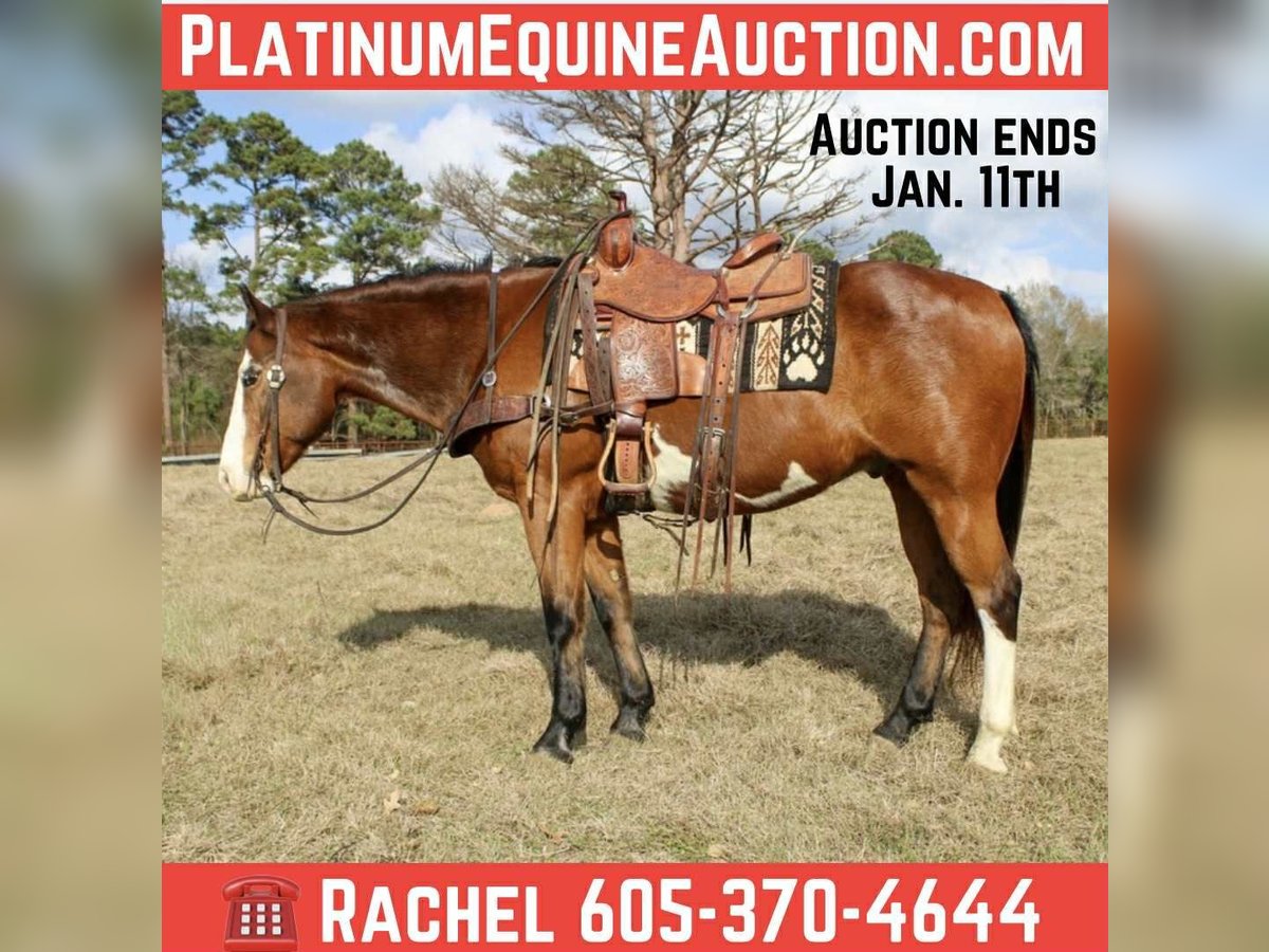 ONLINE AUCTION Place your bids at www.PlatinumEquineAuction.com Starting Bid $3500 Auction ends January 11th, 2025 Need a new saddle? Check out White Rock Saddles on our website or Facebook Hardy is a 11 year old paint gelding, He stands 14.3 hands tall and is stout! He is gentle and quiet making him perfect for riders of all ages and experience levels. Hardy has seen the trails and is confident navigating various terrains. Hardy has been hauled to lots of state parks and trail camps and is absolutely a point and go horse! He’s traffic safe and not spooky. Hardy loves attention and is great with kids. He’s easy to handle, groom, and tack up, making him a joy to have around the barn. He is easy to catch and gentle and well mannered on the ground. Located in Rusk Texas, nationwide shipping is available! Call or text TR Livestock (Rachel) at 605-370-4644 for more info! ONLINE AUCTION Place your bids at www.PlatinumEquineAuction.com Starting Bid $3500 Auction ends January 11th, 2025 Need a new saddle? Check out White Rock Saddles on our website or Facebook