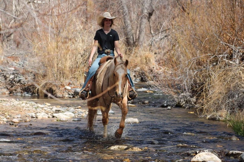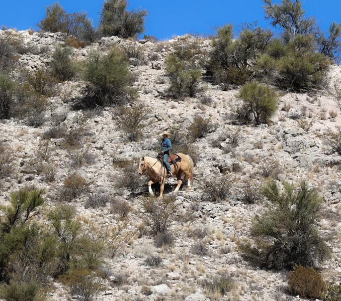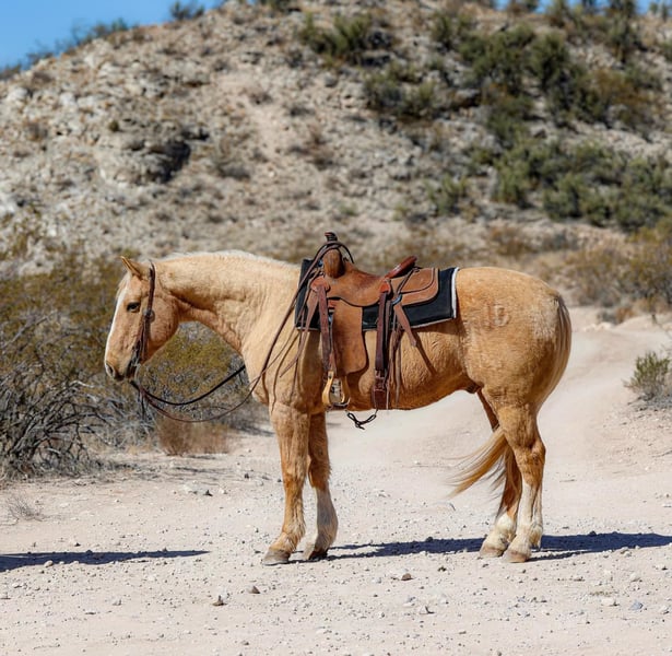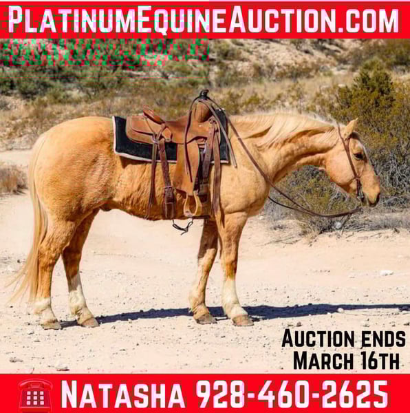 ONLINE AUCTION Place your bids at www.PlatinumEquineAuction.com Starting Bid $3500 Auction ends March 16th, 2025 Need a new saddle? Check out White Rock Saddles on our website or Facebook! Banana is a 10 year old grade gelding standing 14.3hh. Banana is a been there done that gelding and has done absolutely every single job around the ranch. From doctoring yearlings to dragging calves and even packing fencing material and salt. Banana has been used all over the rough country of Arizona and New Mexico and is no stranger to rocky country and a long days work, making him absolutely broke with lots of exposure under his belt. This gorgeous gelding will go absolutely anywhere you point him. Steep rocky terrain, flowing waters, fallen logs, thick brush, the busy streets of town. You point him towards and he’ll trek on through it. This gelding is not only an absolute blast to ride outside, but an absolute gentleman in the arena with a fancy handle!! Banana will walk trot and lope both ways with ease, as well as sidepass, neck rein and has a good stop! Whether you’re looking for a dense boned, surefooted gelding to go do a long days work, a quiet gentleman to ease on down the trail, or a fancy mover to play around in the arena Banana will be your guy!!! Banana is easy to catch and good to groom, saddle, bridle, bathe, shoe and load! Will come with a clean coggins and health! Transport can easily be arranged anywhere in the US!!! Located in Camp Verde, AZ Contact D/C Equine Services Dallas 804-822-2233 Natasha 928-460-2625. ONLINE AUCTION Place your bids at www.PlatinumEquineAuction.com Starting Bid $3500 Auction ends March 16th, 2025 Need a new saddle? Check out White Rock Saddles on our website or Facebook!