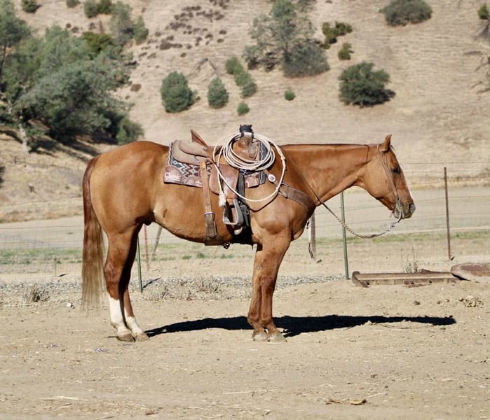 ONLINE AUCTION Place your bids at www.PlatinumEquineAuction.com Starting Bid $3500 Auction ends October 26th, 2025 Need a new saddle? Check out White Rock Saddles on our website or Facebook AVA Bills Doc Frost “Billy” – Safe, Sound, and Solid as They come… Meet Billy, the kind of gelding everyone hopes to find and few ever do. This 2015 AQHA roan dun gelding stands a solid 15 hands, thick-built with big bone, a kind eye, and tiger-striped legs that give him that true ranch horse look. He’s gentle, steady, and broke the way good horses used to be — simple, honest, and dependable through and through. Billy is as easy to ride as he is to look at. He stays soft in the bridle, picks up both leads willingly, stops and backs with ease, and moves off your leg without a fuss. His transitions are smooth, his gaits are comfortable, and he rides collected and correct whether you’re in the arena or out covering country. Out on the trail or around the ranch, he’s the kind you can count on. Traffic, dogs, flags, tarps, balloons, wildlife, water, or bridges — none of it bothers him. He’ll step through creeks, cross logs and tires, ride through brush, and stay quiet and confident no matter where you take him. Billy has been used for ranch chores and long trail rides and never gets worked up about anything. He’s the same horse every time — levelheaded, patient, and willing. Anyone can ride him — from the littlest kids to the biggest cowboys. He’s safe, forgiving, and easy in every way. His pedigree matches his quality — by TKS Bills Misty Dun and out of VA Docs Dakota Ruby, carrying the influence of Bill’s Rock, Dry Doc, and Docs Frosty Buck — all bloodlines known for bone, brains, and heart. Billy represents them well in both mind and body. He’s easy to catch, stands tied, loads, shoes, and hauls like a pro. He’s one of those geldings you can take anywhere and be proud to show up with. We trust this horse completely — he’s proven, genuine, and worth every bit of what he stands for. If you’re looking for a partner that’s safe, classy, and built to last, Billy’s the one you’ll be proud to call yours. Call or text Dina with Longhorn Ranch 831-537-1915–Nationwide shipping available from Paicines, CA. ONLINE AUCTION Place your bids at www.PlatinumEquineAuction.com Starting Bid $3500 Auction ends October 26th, 2025 Need a new saddle? Check out White Rock Saddles on our website or Facebook