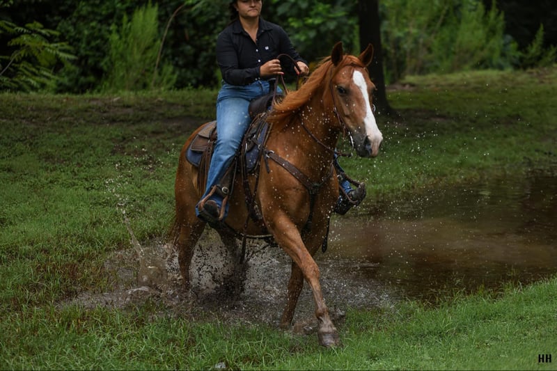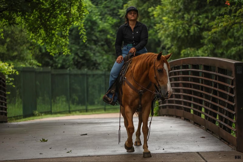 ONLINE AUCTION Place your bids at www.PlatinumEquineAuction.com Starting Bid $3500 Auction ends August 11th, 2024 Need a new saddle? Check out White Rock Saddles on our website or Facebook! Courage is a 9 year old, grade sorrel gelding standing at 15h. Courage is an easy keeper with a nice stout build. He has spent all of his life as a family trail horse and that is truly what he enjoys most! He has an adorable in your pocket personality while still being very well mannered. He will run to you from the far end of the pasture just for some attention and stand nicely to be haltered. Courage is a very safe and gentle horse who has been extremely consistent with me in any time off I’ve given him. Courage’s favorite gait is the walk. He will trot and lope if asked but he certainly prefers to walk everywhere he goes. Courage is ridden best with 2 hand, direct reins but with someone familiar with neck reining does well also. Courage is the type of horse that goes anywhere you want without question. I have taken him through water, over loud noisy bridges, ridden through cattle, walked by big water fountains, and did fantastic with traffic in town. If you’re looking for the perfect trail horse that isn’t in a rush Courage is your guy. Courage has been my favorite go-to horse when it comes to checking fences, getting the mail and packages, or just going for a leisurely ride to relax at the end of my day, its been especially fun for me to do these bareback in a halter. Courage is a gentleman on the ground as well as under saddle. He ties nicely to be groomed, saddled, and bathed. He does well by himself or with other horses in the barn or outside, there aren’t many things that can get this sweet guy worked up. He loads on the trailer with ease and backs off nicely. Courage has been an excellent citizen for my vet, farrier, and dentist and is up to date on those cares. Courage will make an excellent trail companion and family horse, he is so trusting of people and loves attention like a puppy dog! For more questions or information on Courage please call Sydney with SRS Training and Sales at (518) 935-8282. Courage is located in Granbury, TX. If you LOVE Courage and are not local the SRS team is happy to help arrange shipping anywhere in the US! ONLINE AUCTION Place your bids at www.PlatinumEquineAuction.com Starting Bid $3500 Auction ends August 11th, 2024 Need a new saddle? Check out White Rock Saddles on our website or Facebook!
