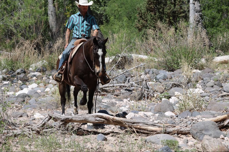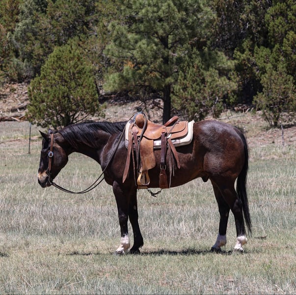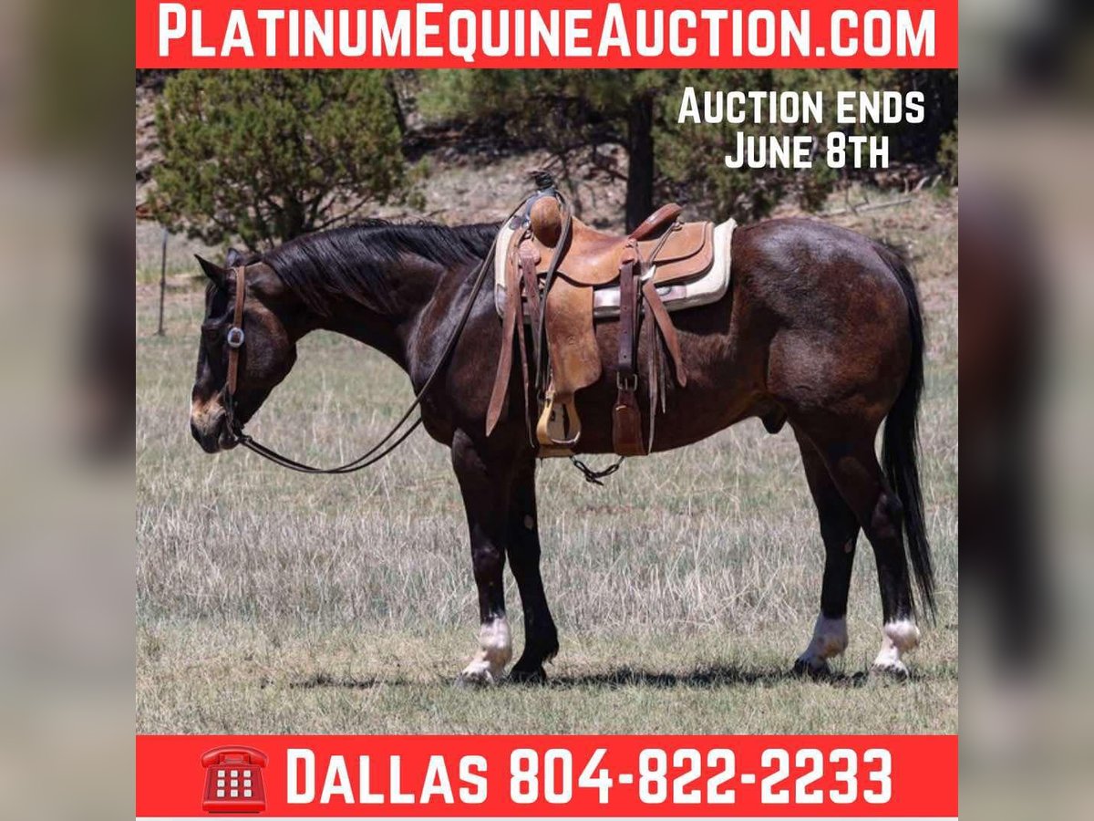 ONLINE AUCTION Place your bids at www.PlatinumEquineAuction.com Starting Bid $3500 Auction ends June 8th, 2025 Need a new saddle? Check out White Rock Saddles on our website or Facebook! Cruise is a 10 year old grade gelding standing 15hh, dense boned and rock footed!! If you’re looking for a been there, done that ranch gelding then look no further, Cruise is your man! He has done absolutely every single job around the ranch besides the dishes! Drug calves to the fire, doctored, loaded trucks, sorted in the alley, and rode countless miles of fence and rough country. This awesome gelding will be surefooted as can be no matter what kind of terrain you’re in, and will bulldoze through absolutely anything you throw in front him. Steep slippery slopes, rocky rough country, fallen logs, thick brush, flowing rivers, you name it and Cruise will bulldoze right through it. Cruise is not only great to ride outside, he’s a blast in the arena as well! He will walk, trot, and lope both ways easily picking up both his leads, has a great neck rein and a big stop. He’ll even carry a flag!! Cruise is easy to catch and good to groom, saddle, bridle, bathe, shoe, and load! Absolutely no buck or funny business. Moves with a sense of purpose ready to go do a job. Will come with a clean coggins and health! Transport can easily be arranged anywhere in the US!! Contact D/C Equine Services Dallas 804-822-2233 Located in Camp Verde, AZ. ONLINE AUCTION Place your bids at www.PlatinumEquineAuction.com Starting Bid $3500 Auction ends June 8th, 2025 Need a new saddle? Check out White Rock Saddles on our website or Facebook!