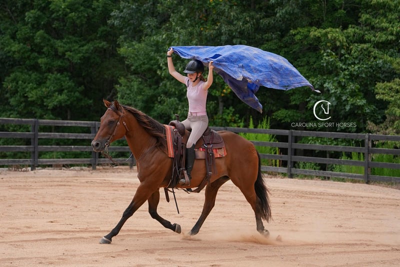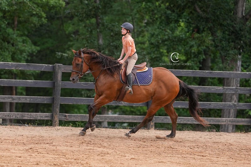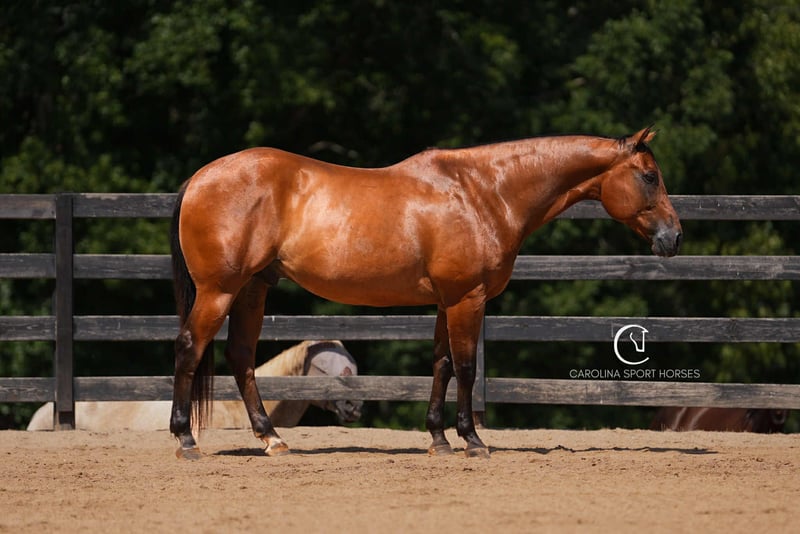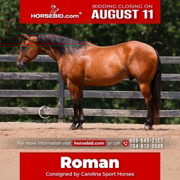 ⚜ The HERITAGE Classic ⚜ Happening now thru MONDAY | AUGUST 11th - Available EXCLUSIVELY on HorseBid's website! For more details and to register visit: www.Horsebid.com CONSIGNOR CONTACT: Carolina Sport Horses Kieran 908-645-2127 or Caleb 704-813-3509 LOCATION: Clover, SC BREED: Quarter Horse REGISTERED: Yes REGISTERED NAME: DS Romans Luck COLOR: Bay HEIGHT: 15.1 AGE: 11 GENDER: Gelding DS Romans Luck “Roman” is an 11 year old AQHA gelding standing 15.1 hands high. Roman is a useful horse to have around the farm. The kids enjoy taking lessons on him, guests and friends can take him out on trail rides, and he’s a blast on the cross country course and on hunter paces too! He’s at a great age where he’s seen and done it all - nothing phases him, and nervous riders don’t bother him. He knows his job, does it well, and can do just about anything you can dream up. Roman might be one of the most tolerant horses we have ever had when it came to doing all of the fun “spooky” video we do with our horses. We really couldn’t get a rise out of him, and the kids had so much fun! In the ring, Roman is simple and straightforward. He rides around on a loose rein, has a wonderful easy neck rein, and good brakes. He is broke both English and western, and the kids love to hop on him bareback! He did the lesson horse job before coming to us, so he is no stranger to bouncy kids, nervous nellys, and adults getting their confidence back. He will jump around small fences in the ring, and has lots of experience schooling on the cross country course and jumping all the fences out on hunter paces. Off property and on the trails, Roman is the best! He is a tried and true trail master. Water, traffic, hills, obstacles, anything in front of him he handles with ease and bravery. He will ride out alone, pony youngsters, or ride in a group. You can throw anyone up on his back and know they will be safe and enjoy their ride! In the barn, Roman is sweet and gentle. He can be handled by anyone, and has great ground manners. He’s a good boy for all the usual barn tasks, and enjoys all the attention he gets! He’s easy to catch, and lives out in a mixed herd. Roman is an easy keeper with no vices or maintenance required. ♦️ Recent Clean Vet Check on File ♦️Our program produces versatile and family-friendly horses for all disciplines and levels of the sport. While at our farm, every horse is handled, ridden, and loved by us and our children. We make sure our horses are well versed in trail riding, going off property, attending clinics and lessons, and some go to horse shows, and fox hunt. This is a family operation priding ourselves in finding and producing quality family, amateur friendly horses for all ages and disciplines. Check out our website for testimonials! ♦️We are located in Clover, SC. We can help you arrange shipping anywhere! ♦️For more information about Roman, or any of our other horses call or text us. Kieran 908-645-2127 Caleb 704-813-3509
