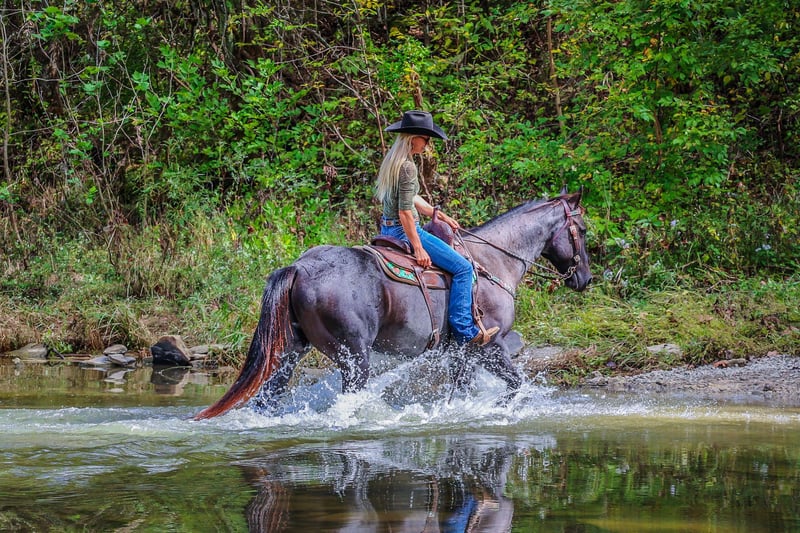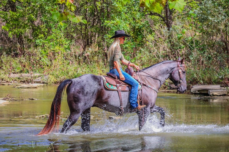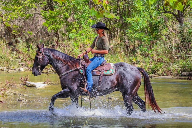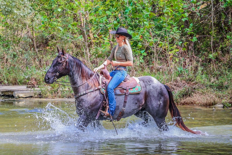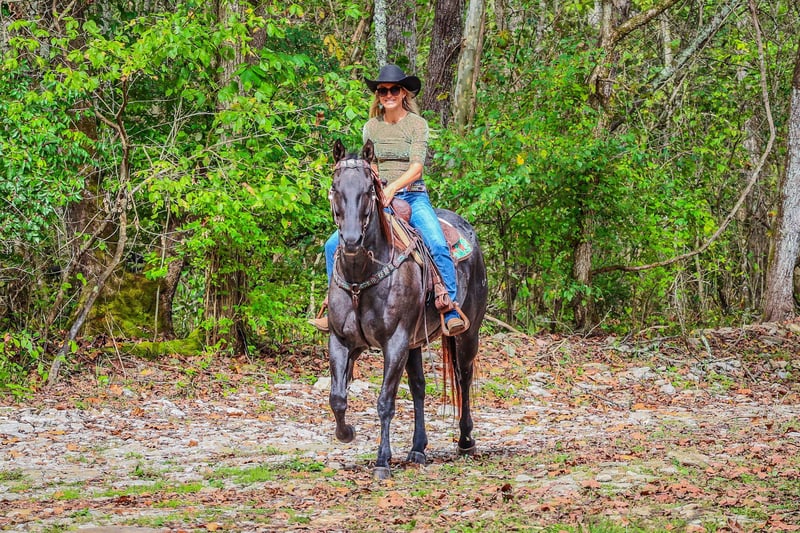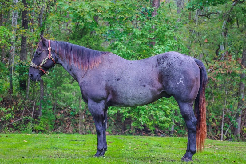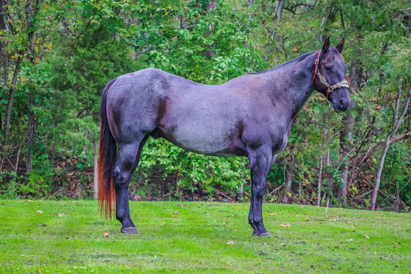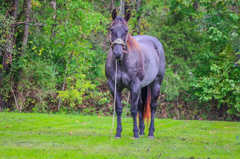 ONLINE AUCTION Place your bids at www.PlatinumEquineAuction.com Starting Bid $3500 Auction ends October 20th, 2024 Need a new saddle? Check out White Rock Saddles on our website or Facebook! This is “BLUE BAMA CANNON”, a registered AQHA TRUE BLUE ROAN GELDING that has done all aspects of ranch work. He has been used in the stockyards and is very cowy, athletic, and fun to ride. He has ponied many other horses. He has been roped off of lots outside in the pasture. He has also been roped off of out of the box. He is also patterned and has been hauled and shown at the junior rodeos. This gelding is a superb trail horse that will go anywhere you want to go. He has a nice turnaround, a solid stop, he will back up, move off of leg cues, and you can open and close gates off of him. He is very personable, friendly, civilized, and gentle. He has no problematic behavior what so ever. He has excellent ground manners, stands tied, loads, bathes, and hauls with no fuss. He is thick made, stands 15.2 hands tall, and is 9 years old. He is a true blue roan with a good foot, solid bone, and a sturdy build. You can take him to get your ranch chores done or enjoy him for leisurely trail rides. He will go anywhere you want to go courageously and bravely. He crosses any depth of water and can handle steep and rocky terrain. He is versatile, well trained, very experienced, and intelligent. He is the package deal with good breeding and an excellent attitude. He lopes nice circles, will one step lope, and he catches his leads. Don’t miss out if you have been wanting a true blue that is a solid and seasoned ranch horse. Call HH Horses Erin 304-238-4155 Located in Flemingsburg, KY. ONLINE AUCTION Place your bids at www.PlatinumEquineAuction.com Starting Bid $3500 Auction ends October 20th, 2024 Need a new saddle? Check out White Rock Saddles on our website or Facebook!